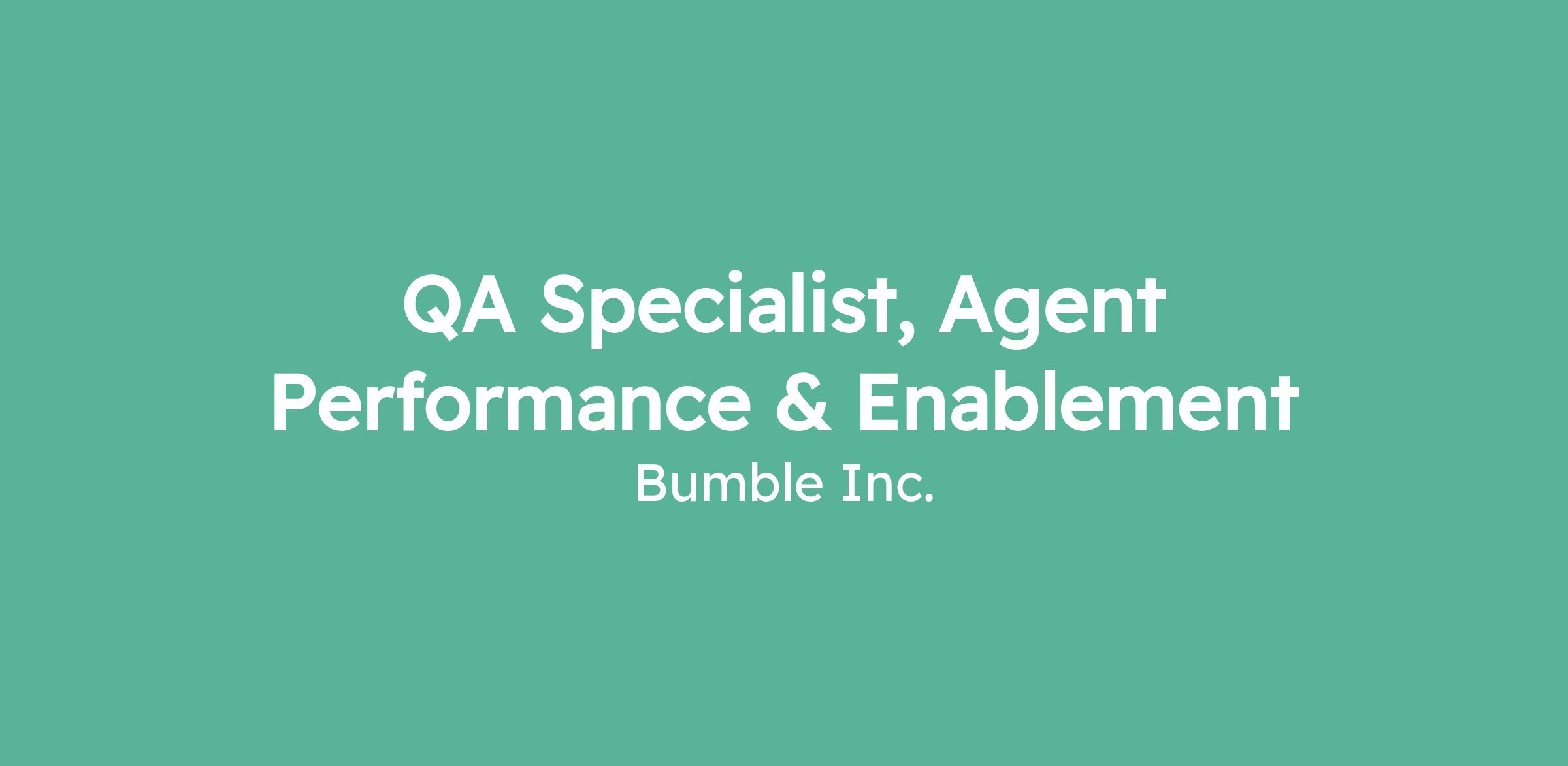 QA Specialist, Agent Performance & Enablement
