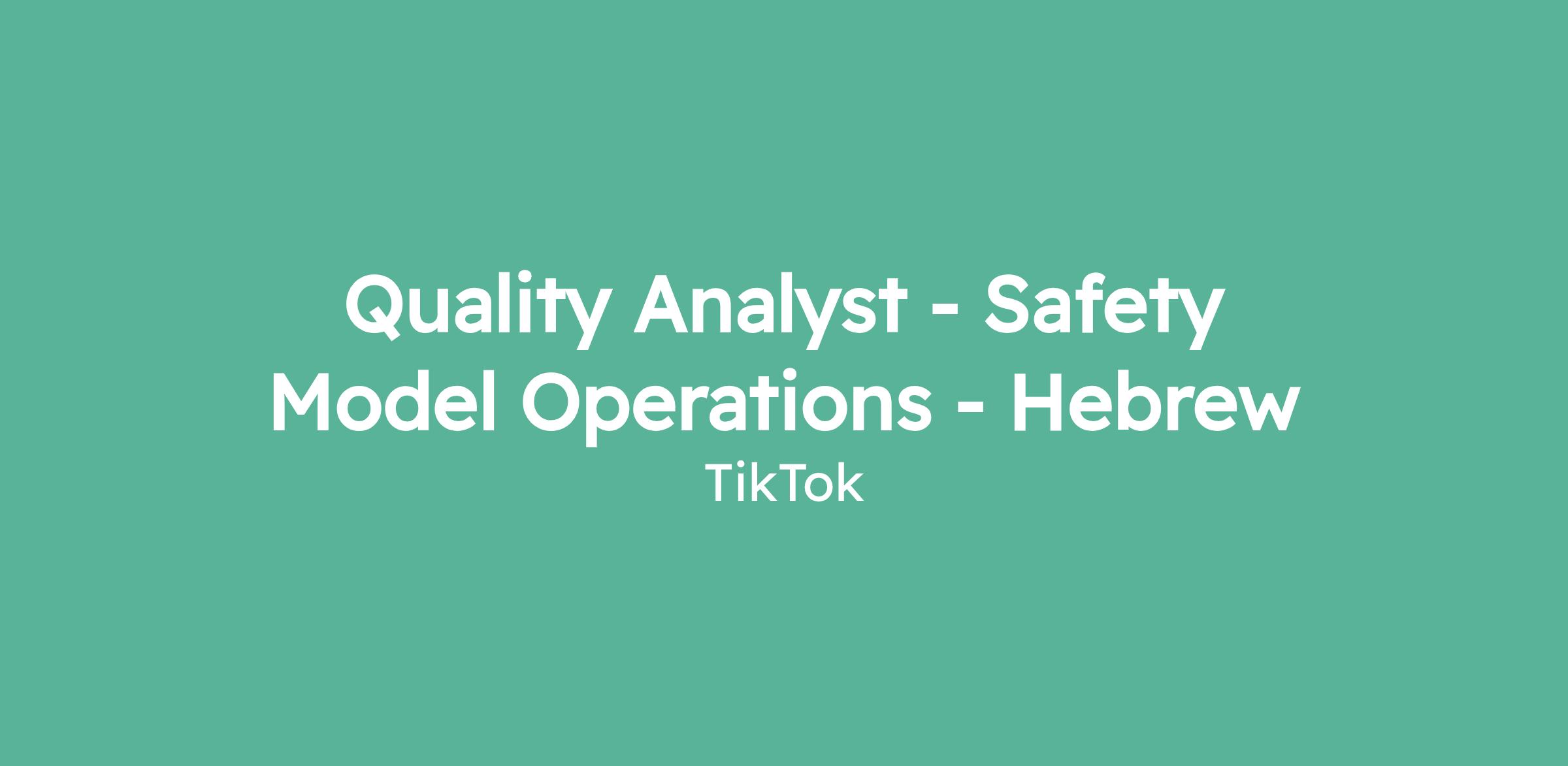 Quality Analyst - Safety Model Operations - Hebrew