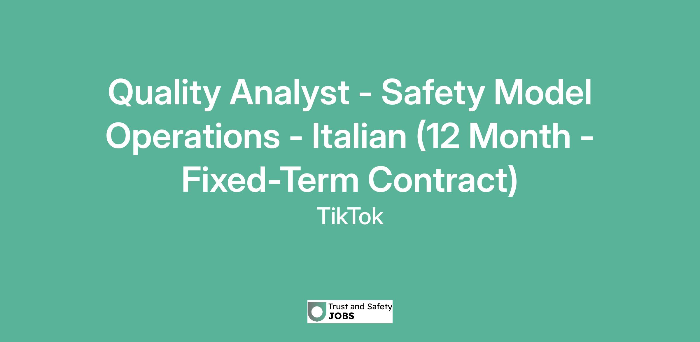 Quality Analyst - Safety Model Operations - Italian (12 Month - Fixed-Term Contract)
