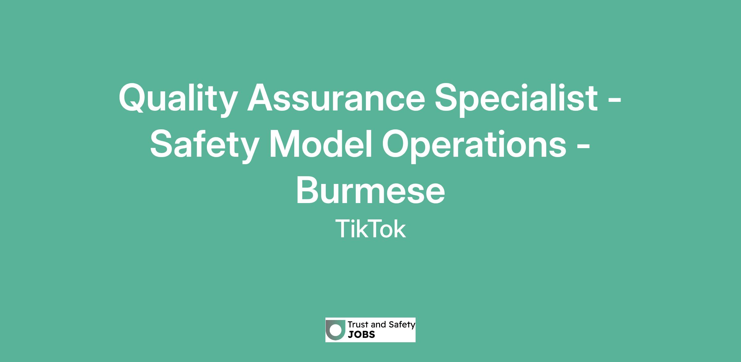 Quality Assurance Specialist - Safety Model Operations - Burmese