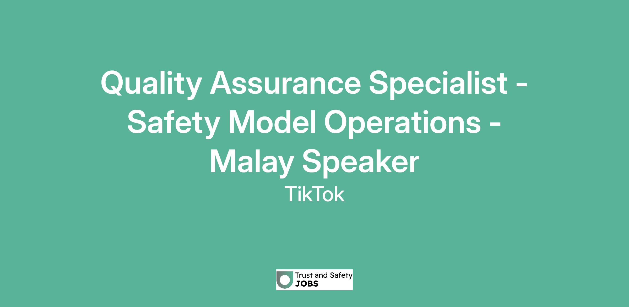 Quality Assurance Specialist - Safety Model Operations - Malay Speaker
