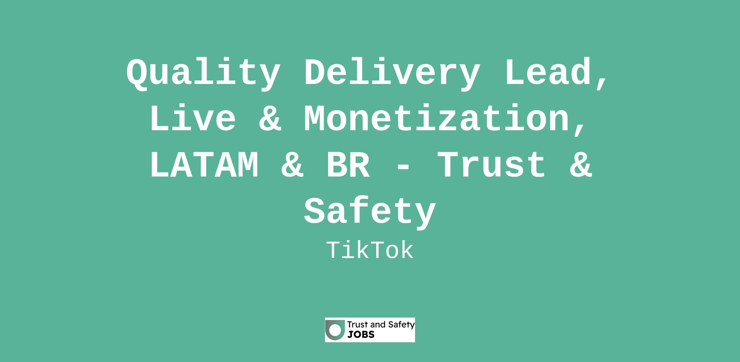 Quality Delivery Lead, Live & Monetization, LATAM & BR - Trust & Safety