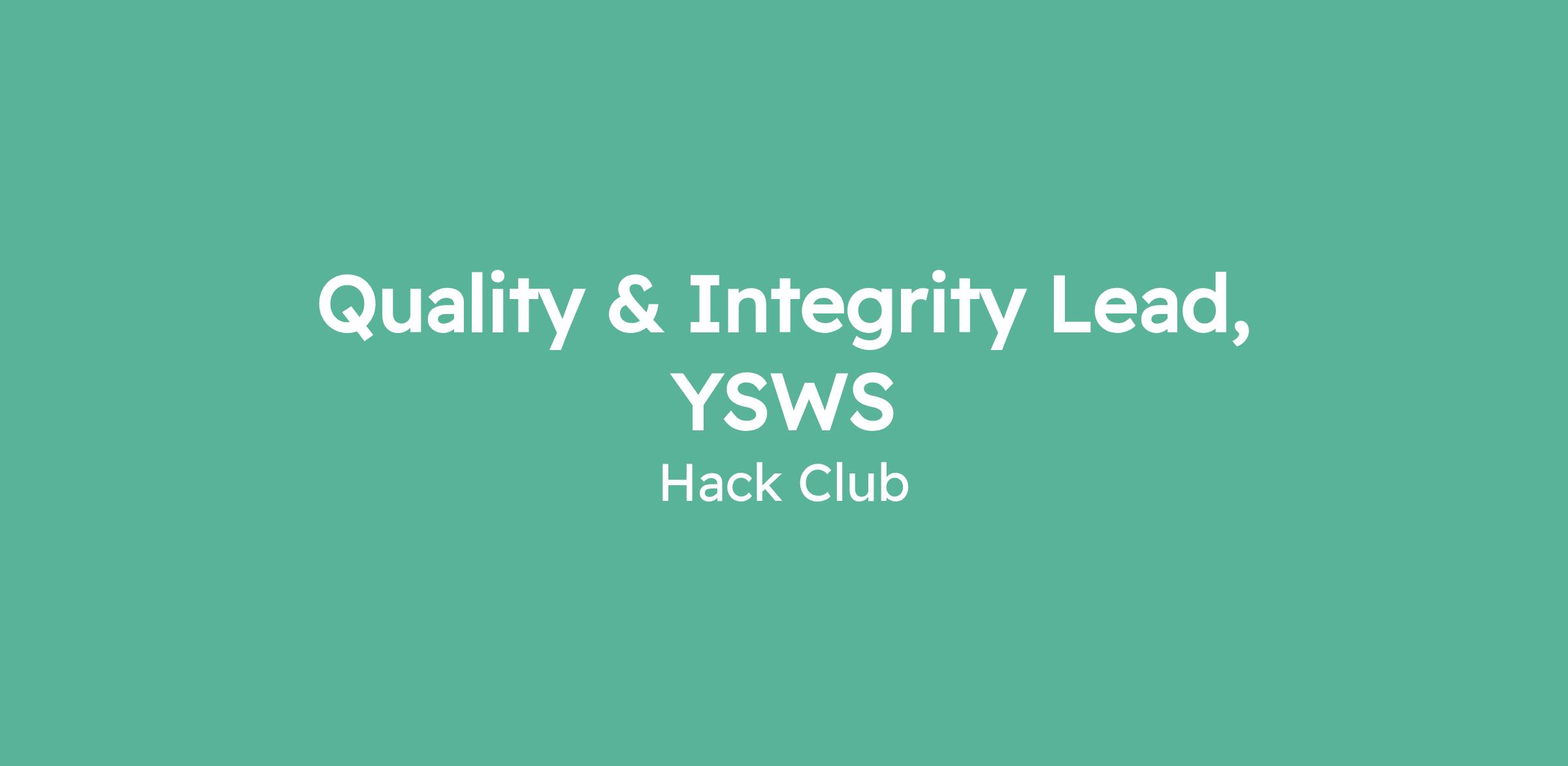 Quality & Integrity Lead, YSWS
