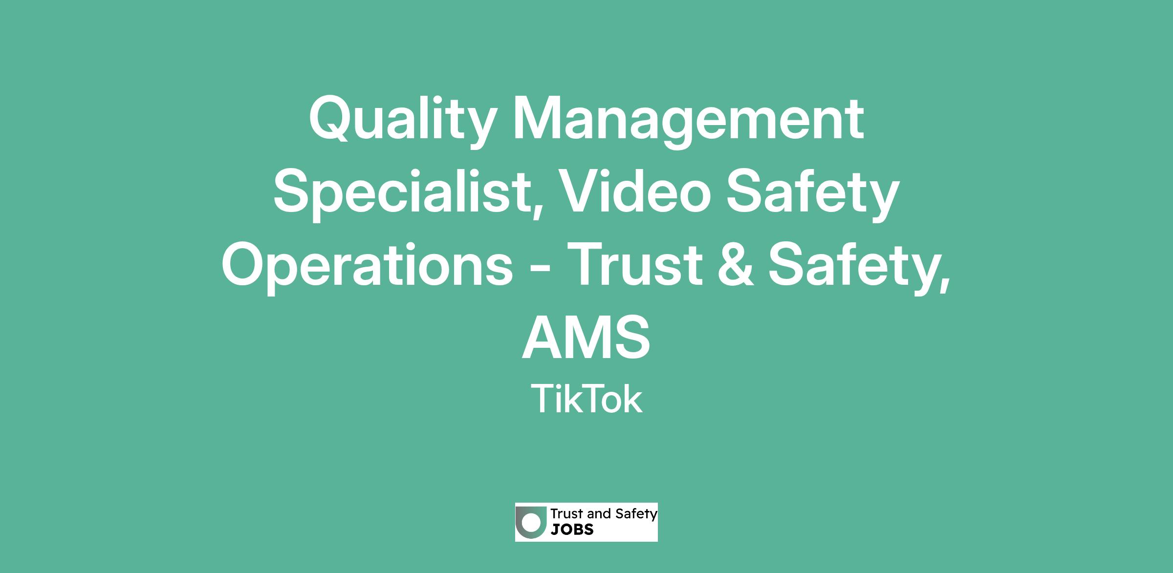 Quality Management Specialist, Video Safety Operations - Trust & Safety, AMS