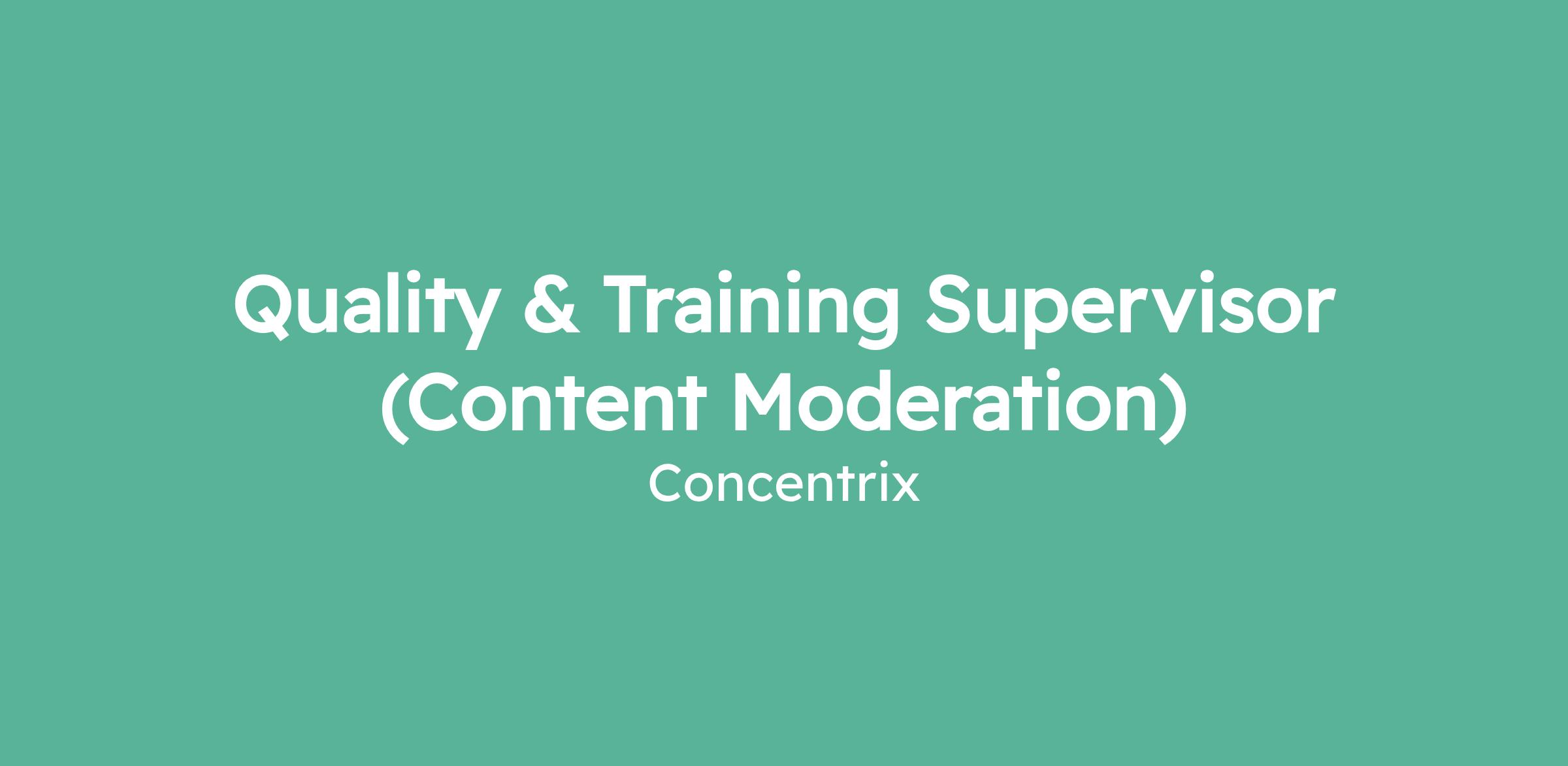 Quality & Training Supervisor (Content Moderation)