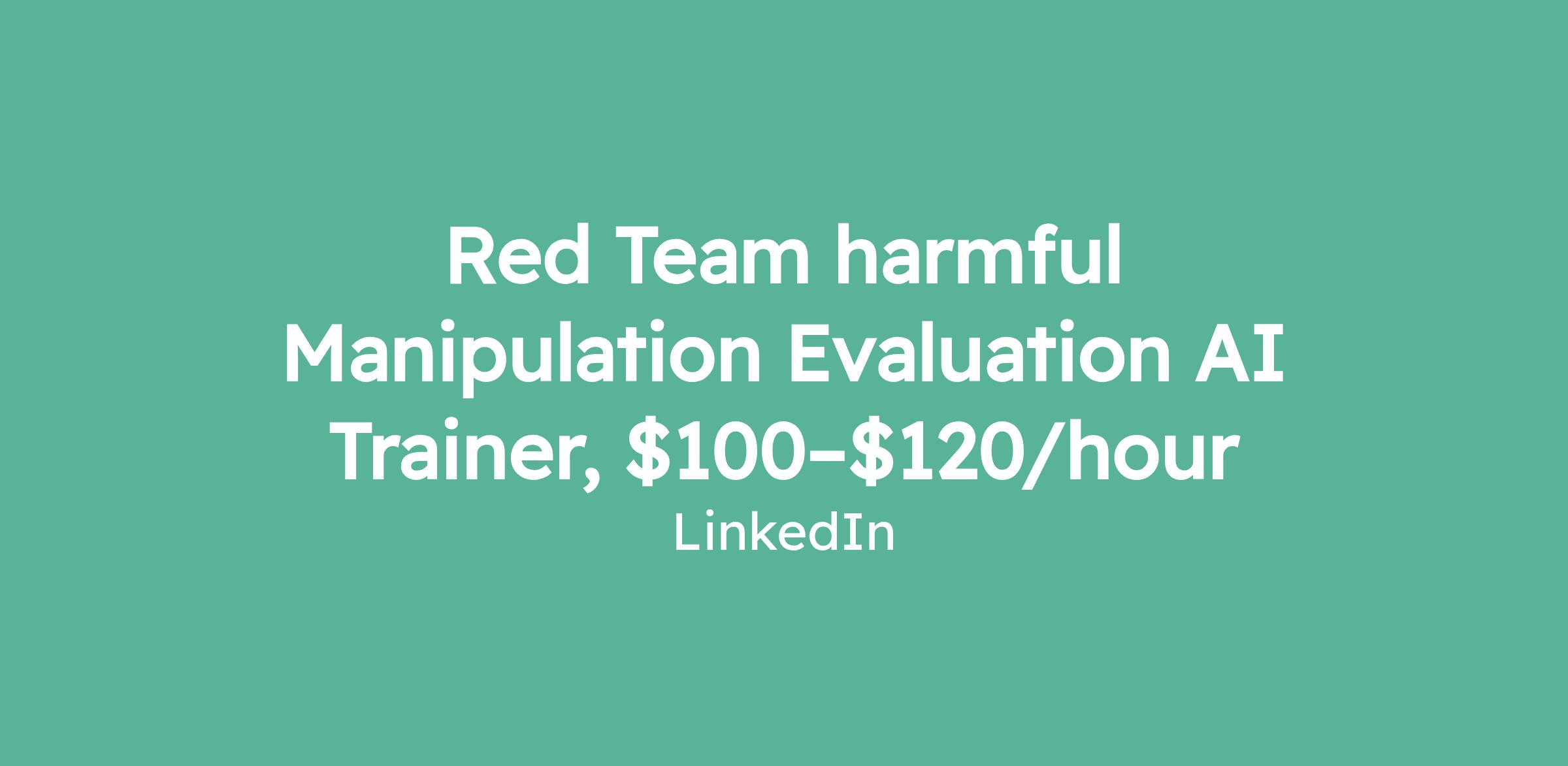 Red Team harmful Manipulation Evaluation AI Trainer, $100–$120/hour