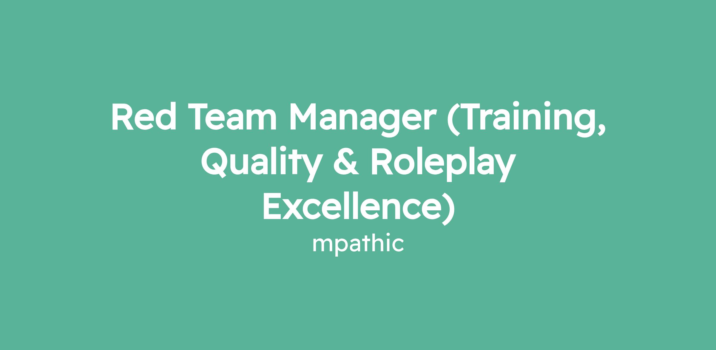 Red Team Manager (Training, Quality & Roleplay Excellence)
