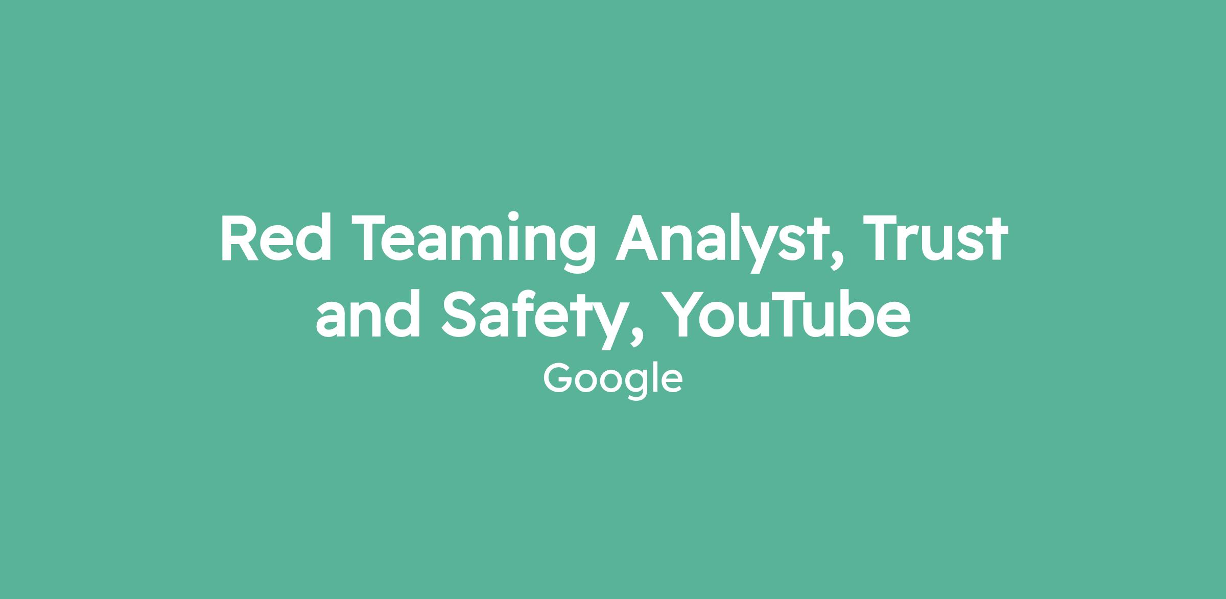 Red Teaming Analyst, Trust and Safety, YouTube