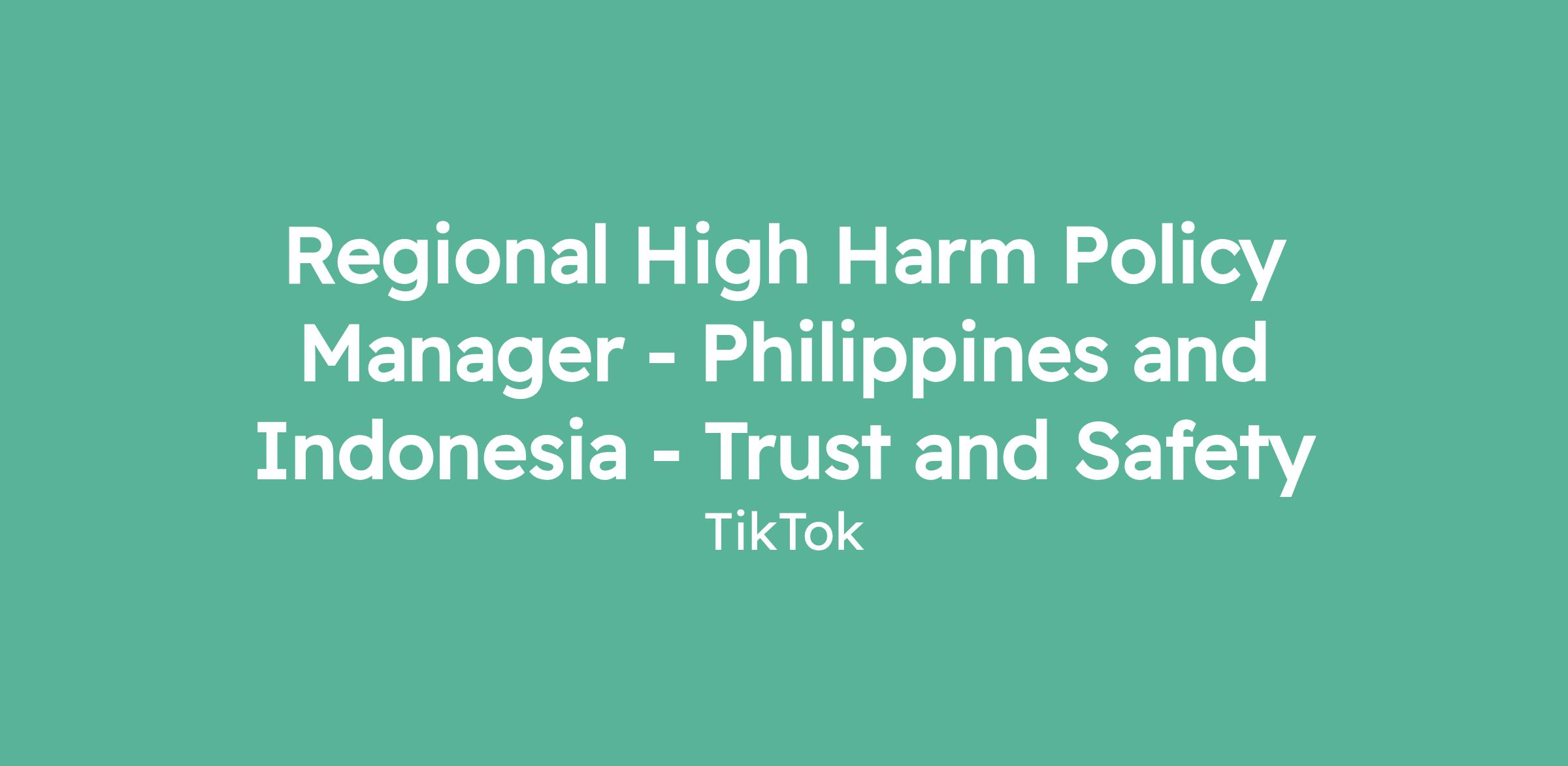 Regional High Harm Policy Manager - Philippines and Indonesia - Trust and Safety
