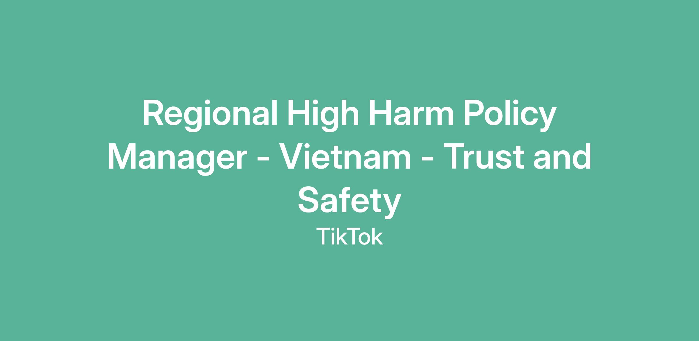 Regional High Harm Policy Manager - Vietnam - Trust and Safety