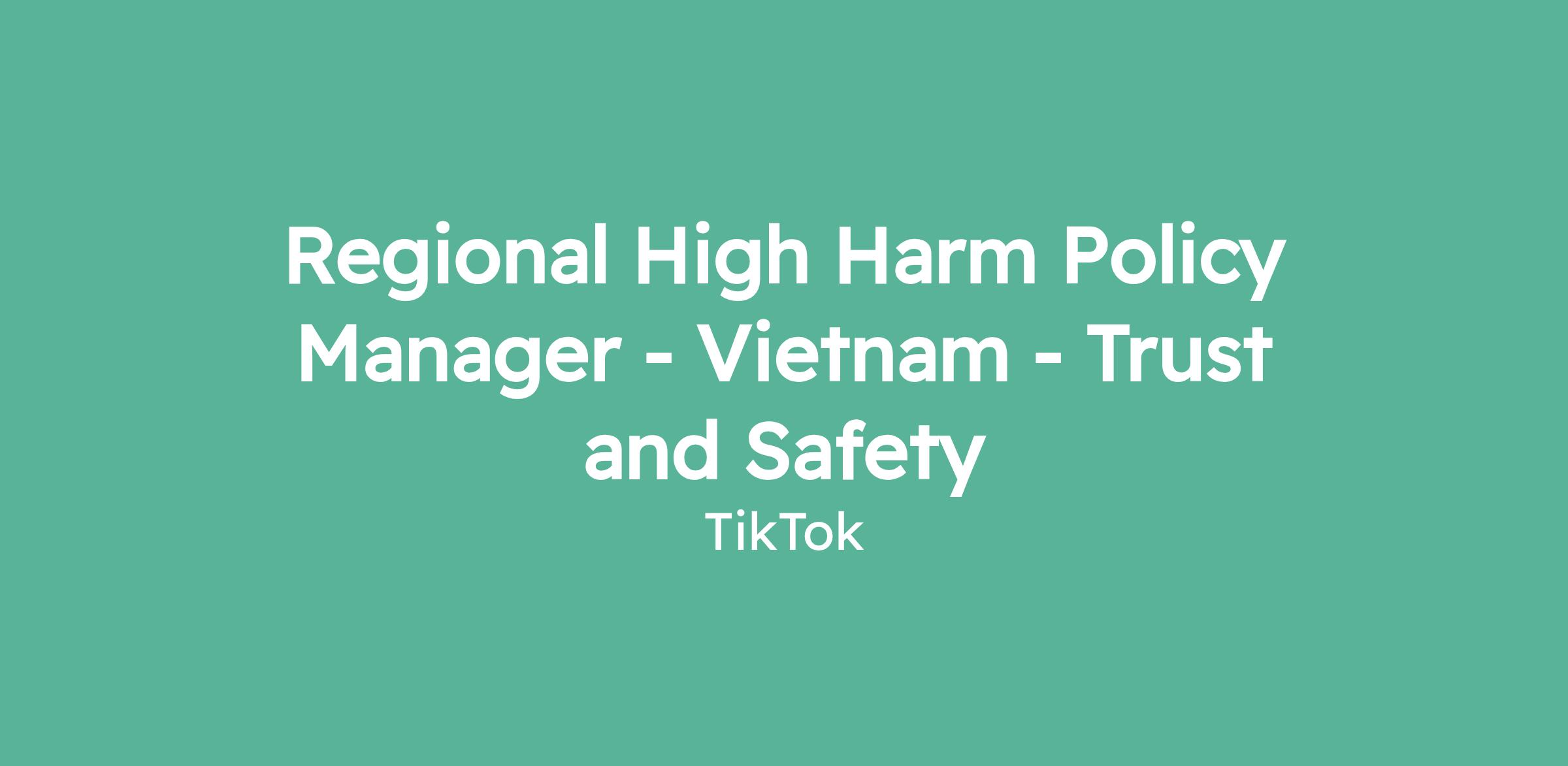 Regional High Harm Policy Manager - Vietnam - Trust and Safety