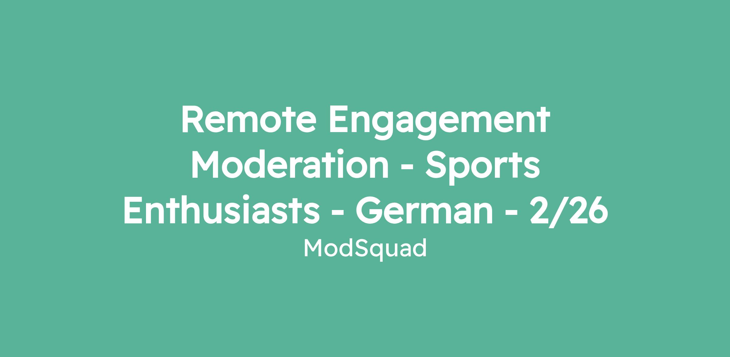 Remote Engagement Moderation - Sports Enthusiasts - German - 2/26