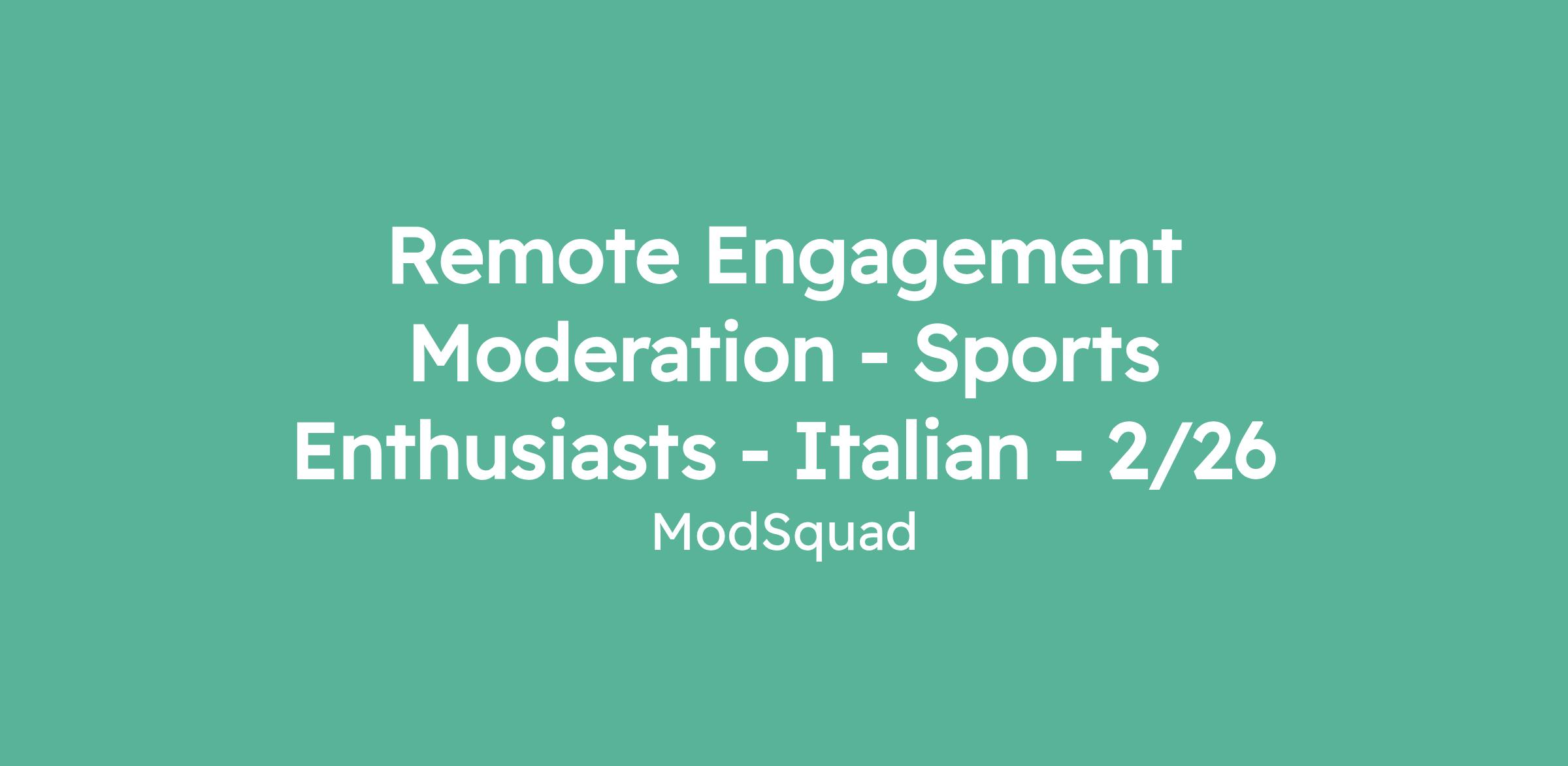 Remote Engagement Moderation - Sports Enthusiasts - Italian - 2/26