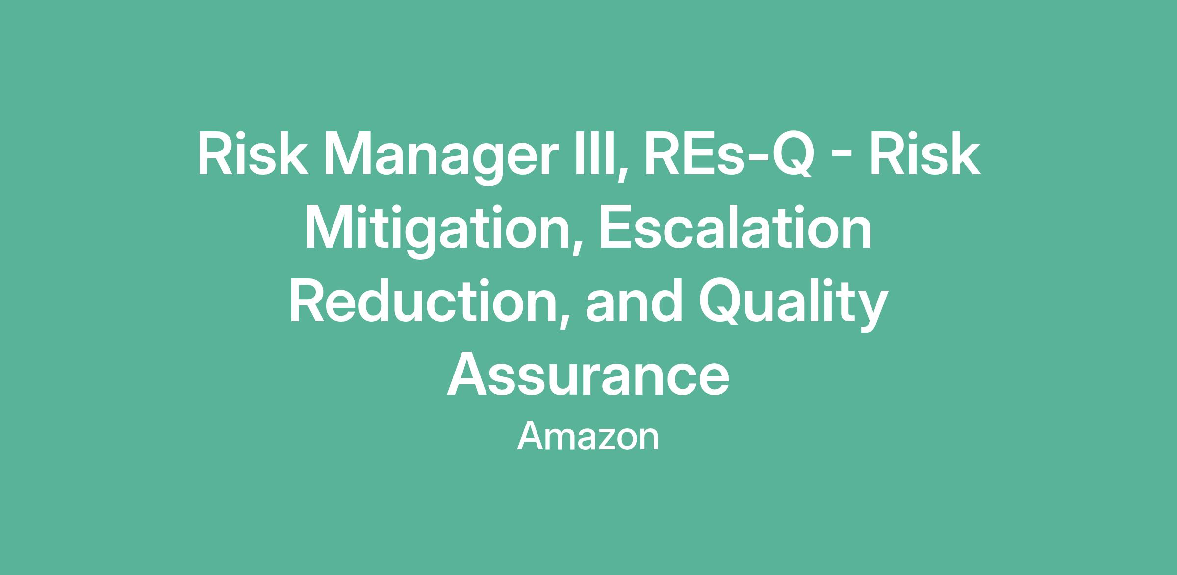 Risk Manager III, REs-Q - Risk Mitigation, Escalation Reduction, and Quality Assurance