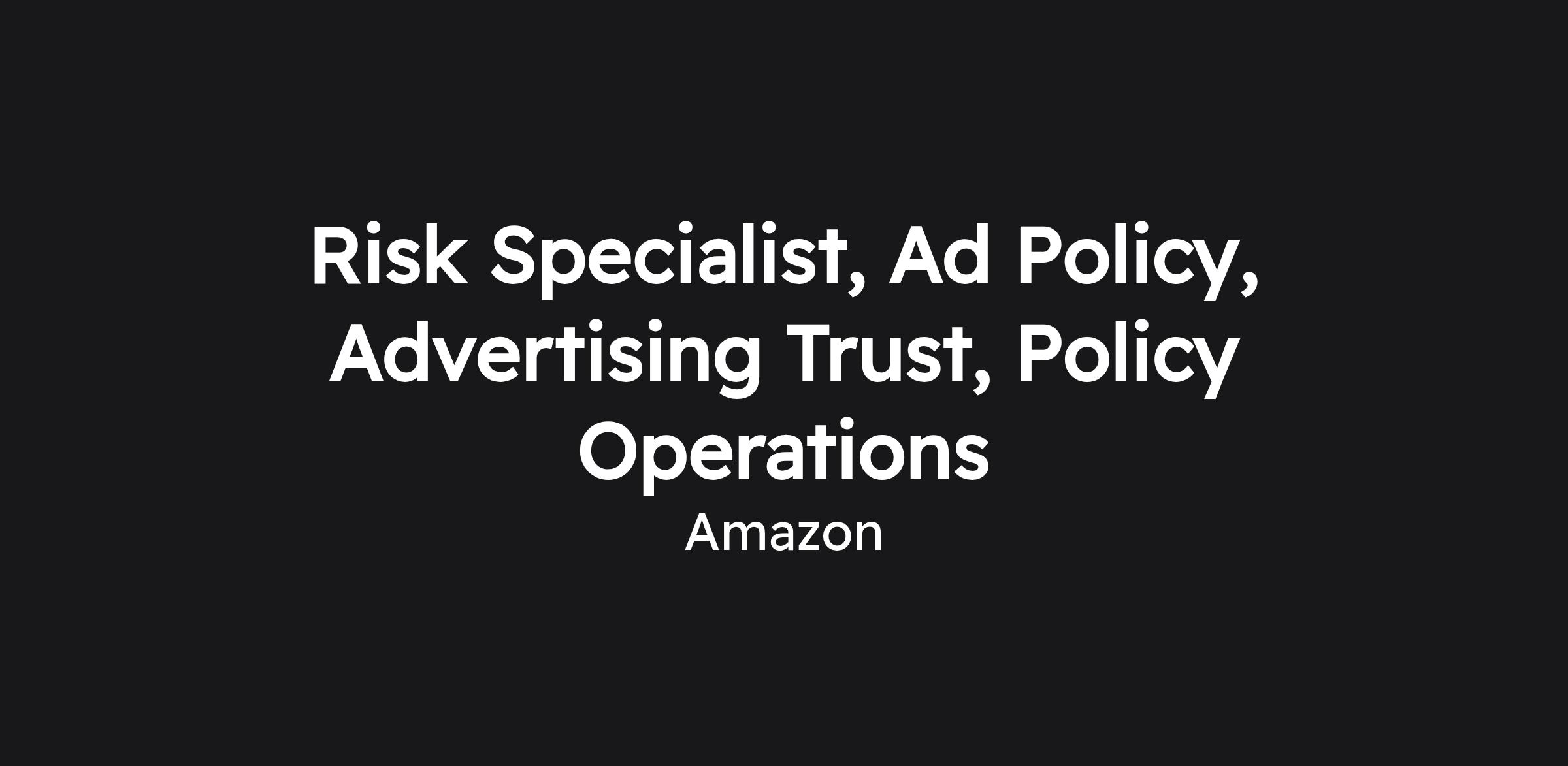 Risk Specialist, Ad Policy, Advertising Trust, Policy Operations