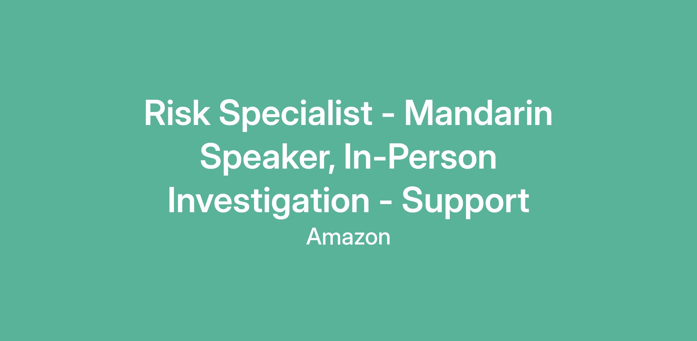 Risk Specialist - Mandarin Speaker, In-Person Investigation - Support