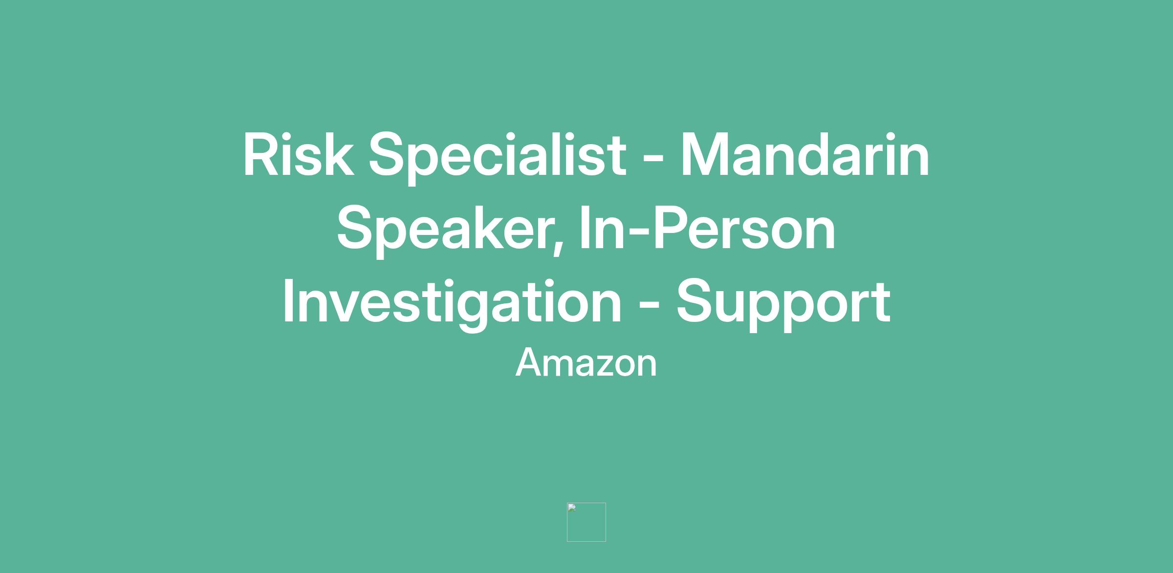 Risk Specialist - Mandarin Speaker, In-Person Investigation - Support