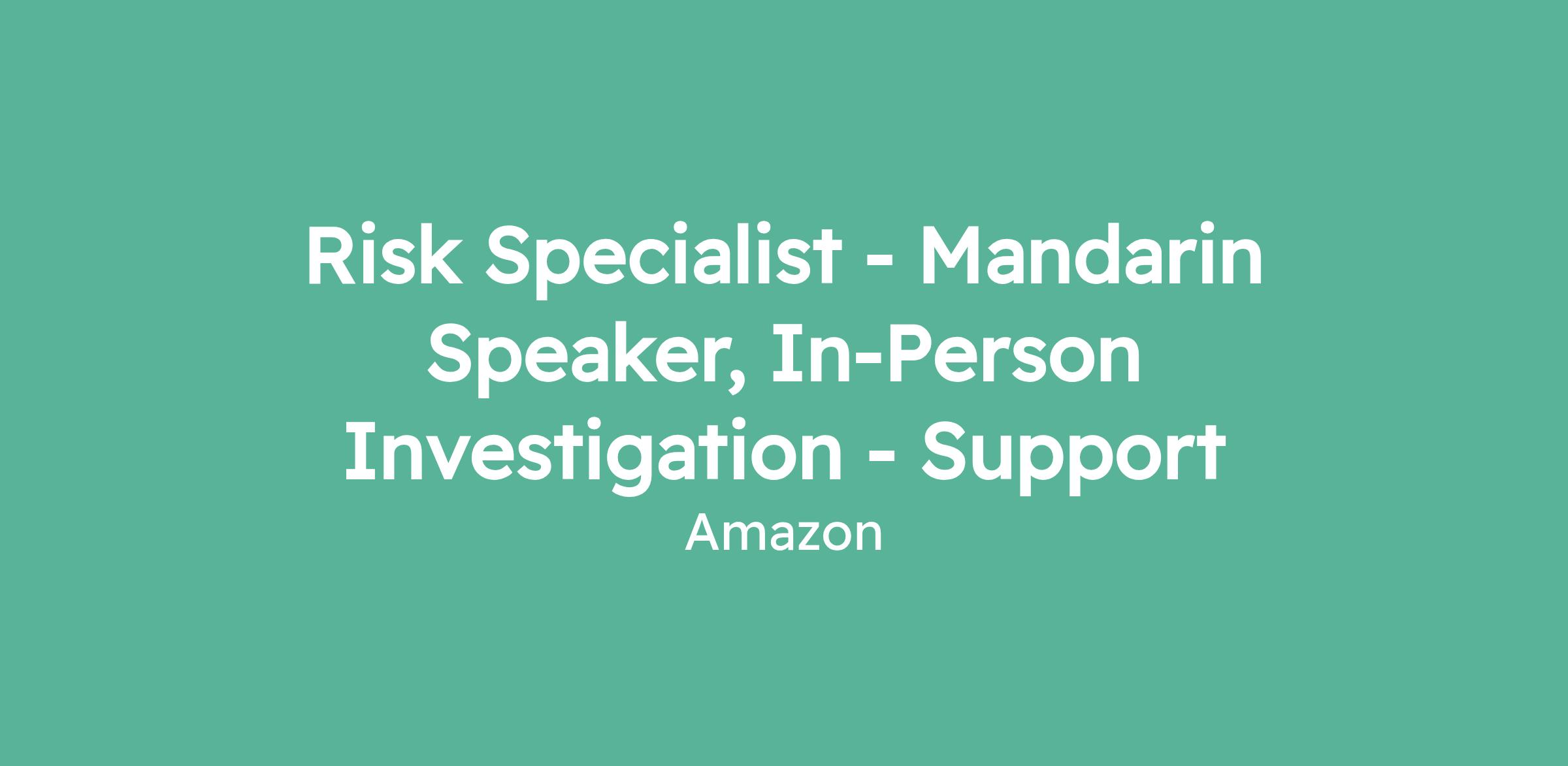 Risk Specialist - Mandarin Speaker, In-Person Investigation - Support