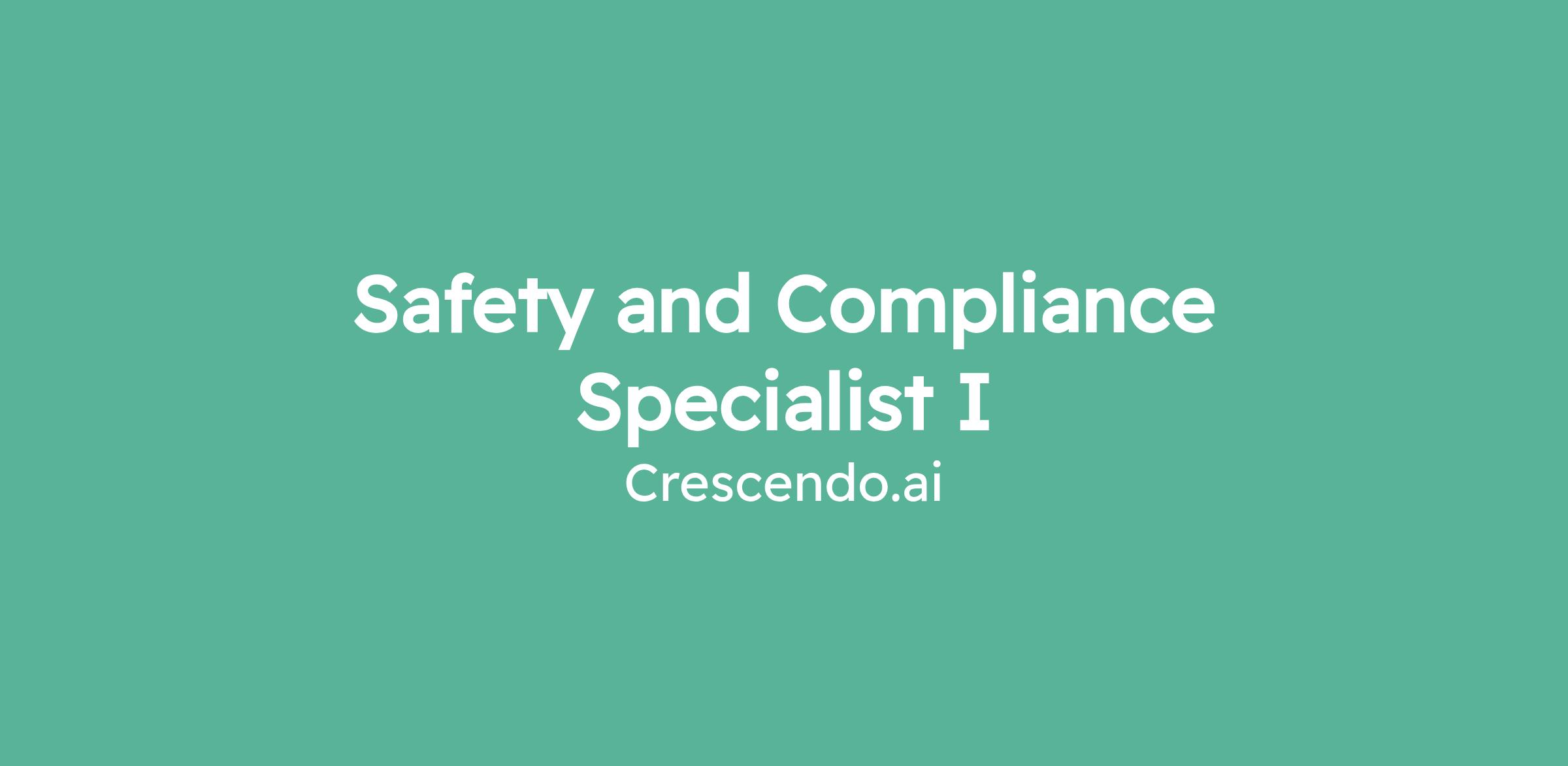 Safety and Compliance Specialist I