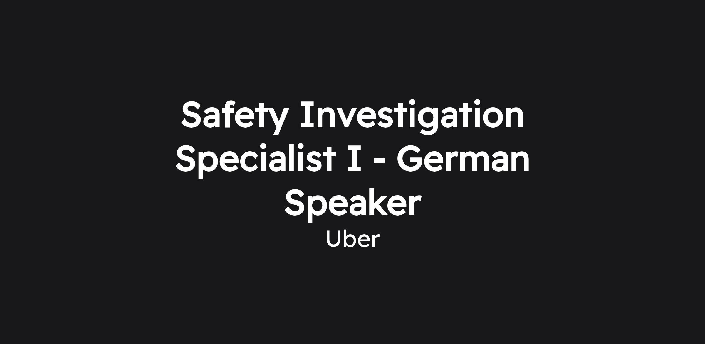 Safety Investigation Specialist I - German Speaker