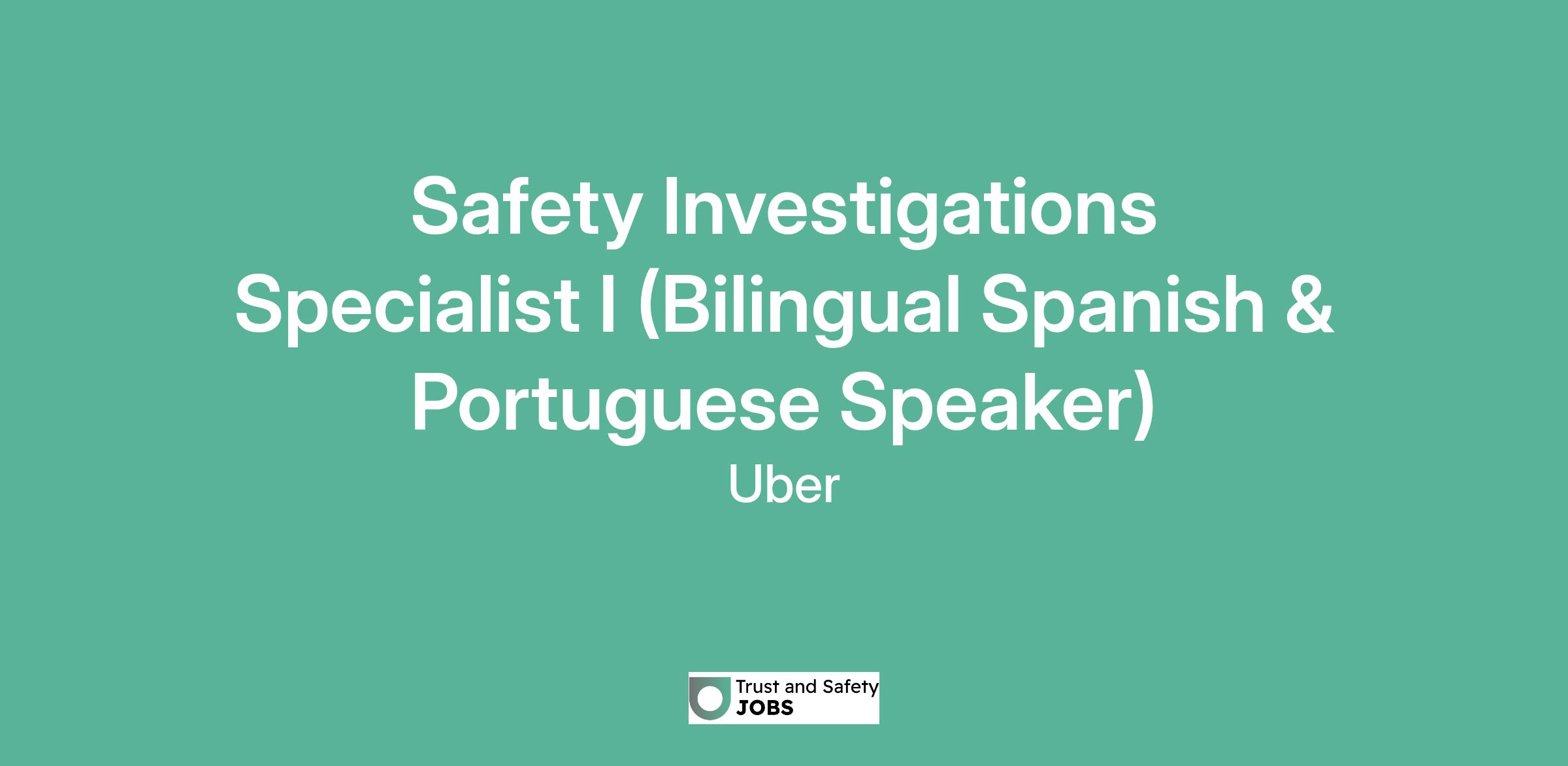 Safety Investigations Specialist I (Bilingual Spanish & Portuguese Speaker)