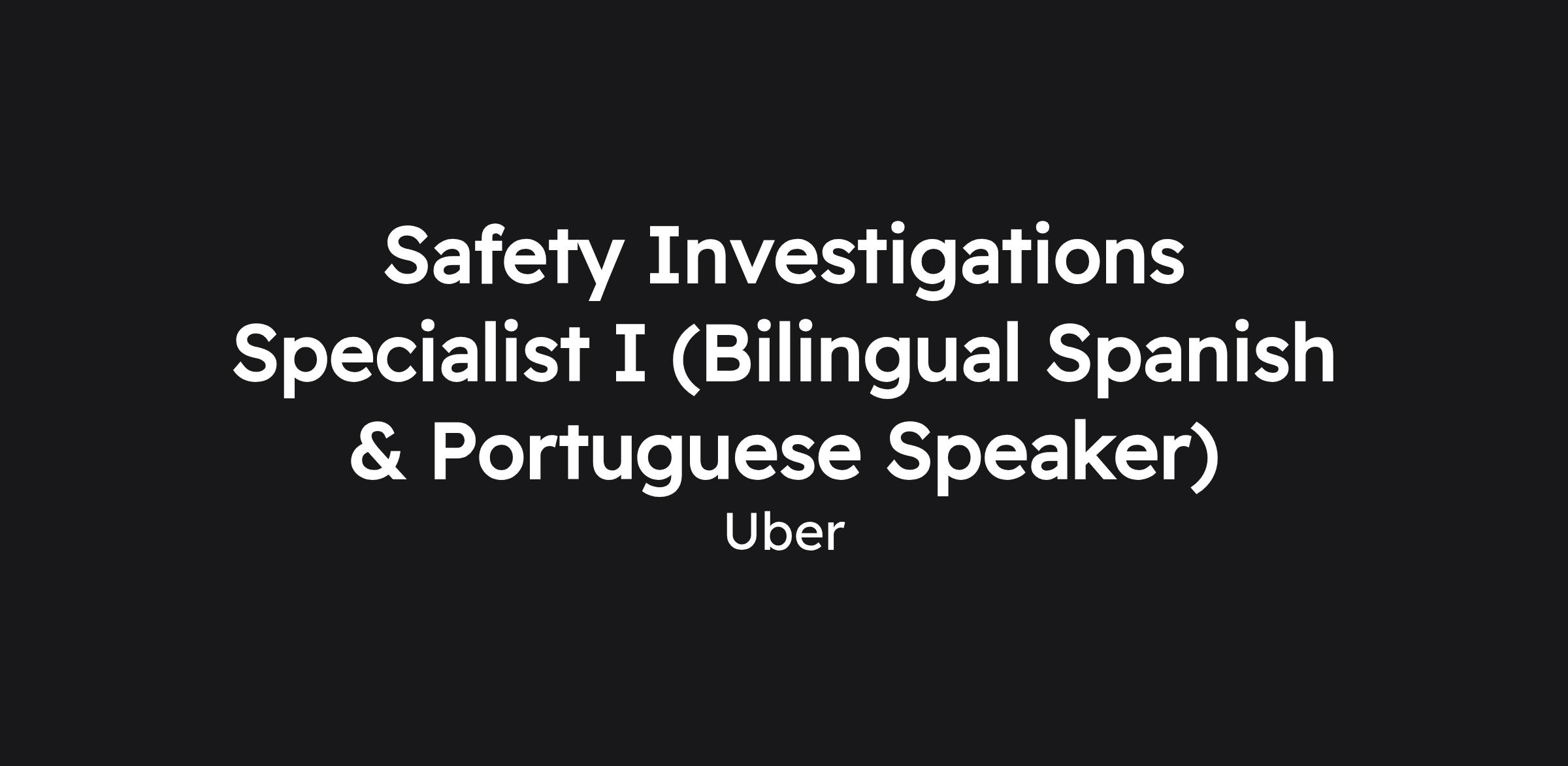 Safety Investigations Specialist I (Bilingual Spanish & Portuguese Speaker)