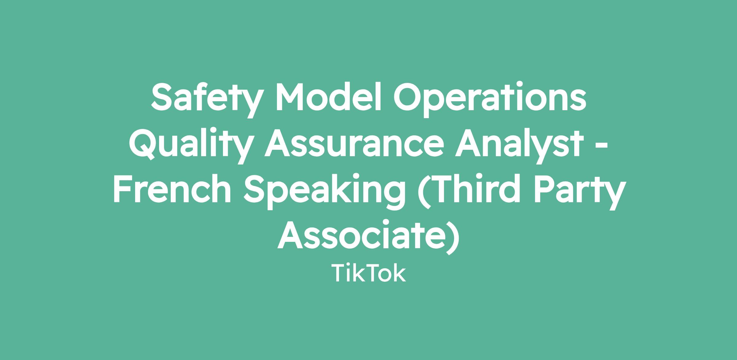 Safety Model Operations Quality Assurance Analyst - French Speaking (Third Party Associate)
