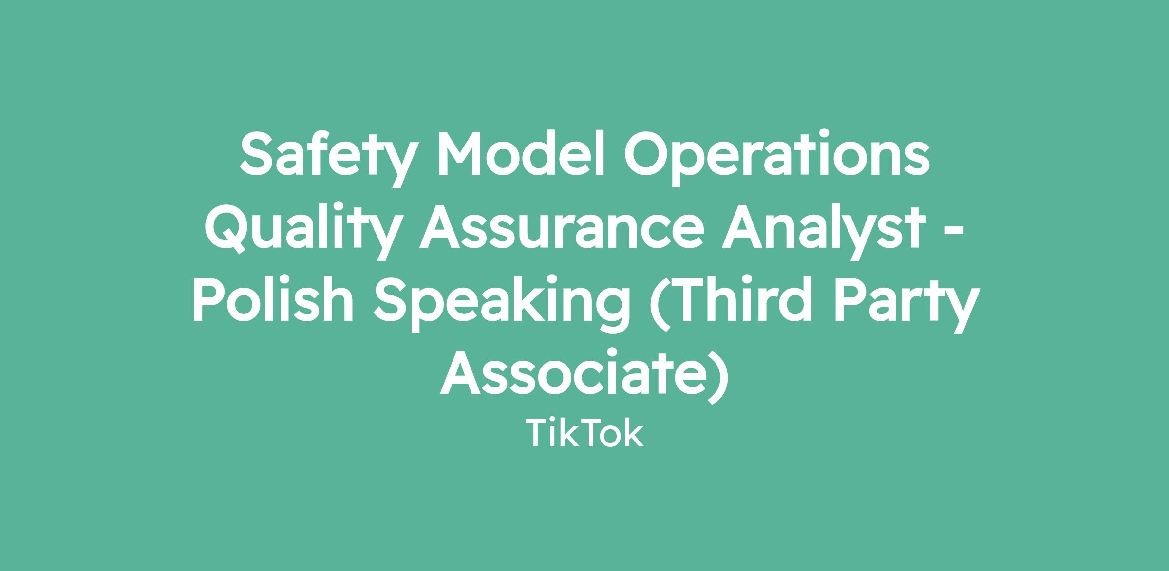 Safety Model Operations Quality Assurance Analyst - Polish Speaking (Third Party Associate)
