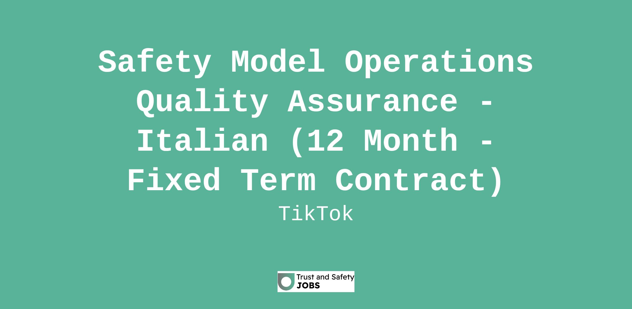 Safety Model Operations Quality Assurance - Italian (12 Month - Fixed Term Contract)