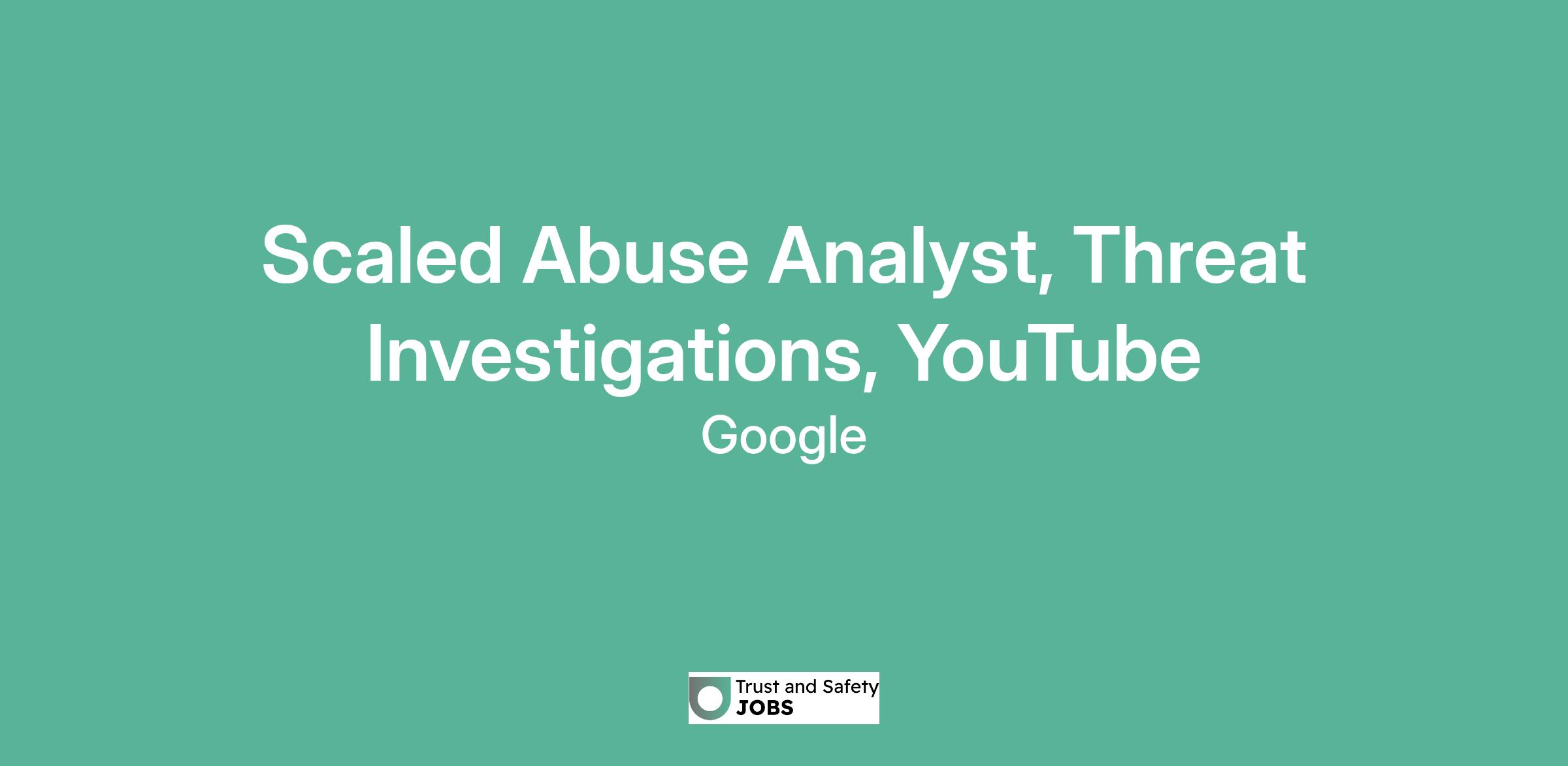 Scaled Abuse Analyst, Threat Investigations, YouTube
