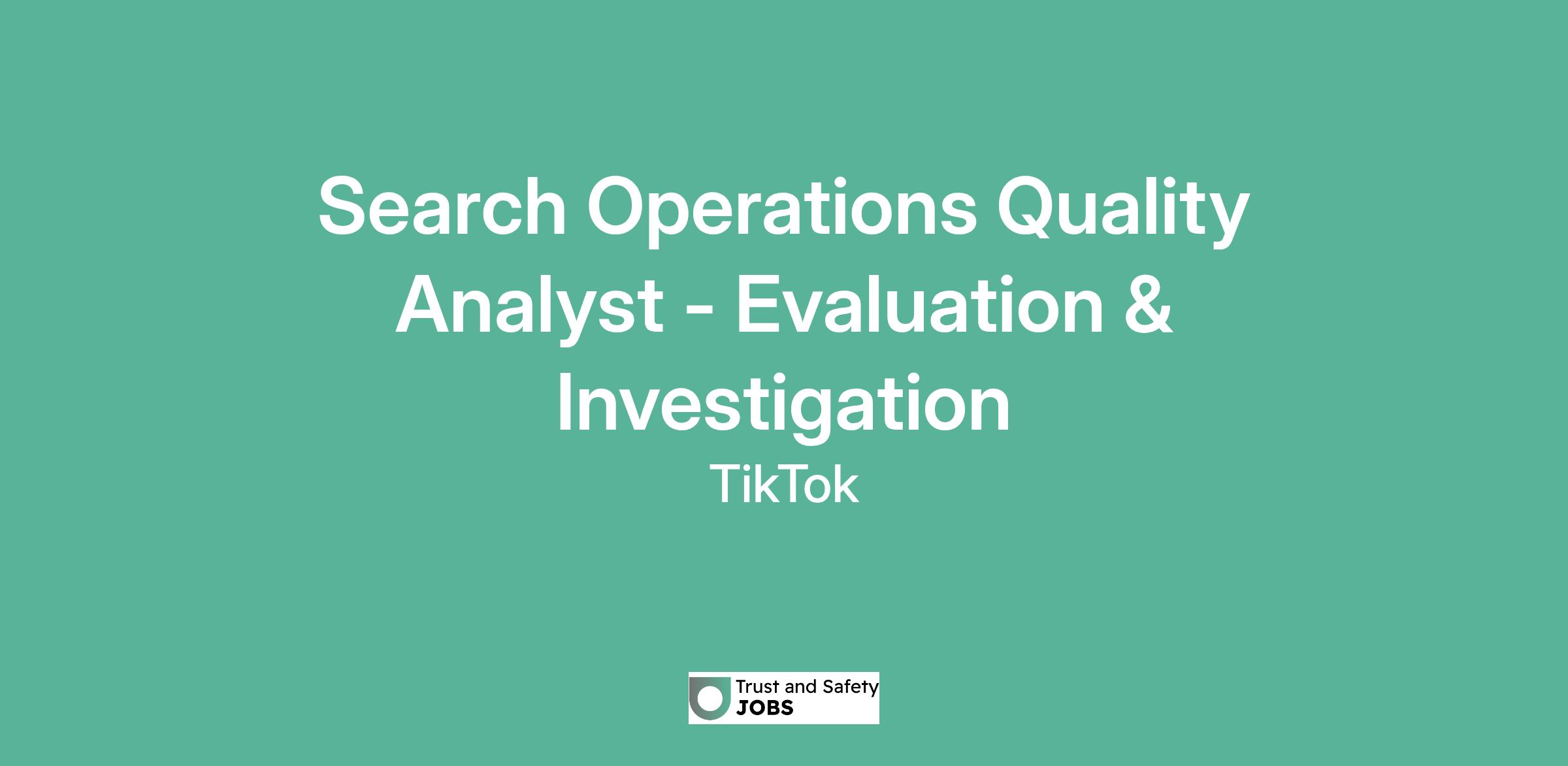 Search Operations Quality Analyst - Evaluation & Investigation