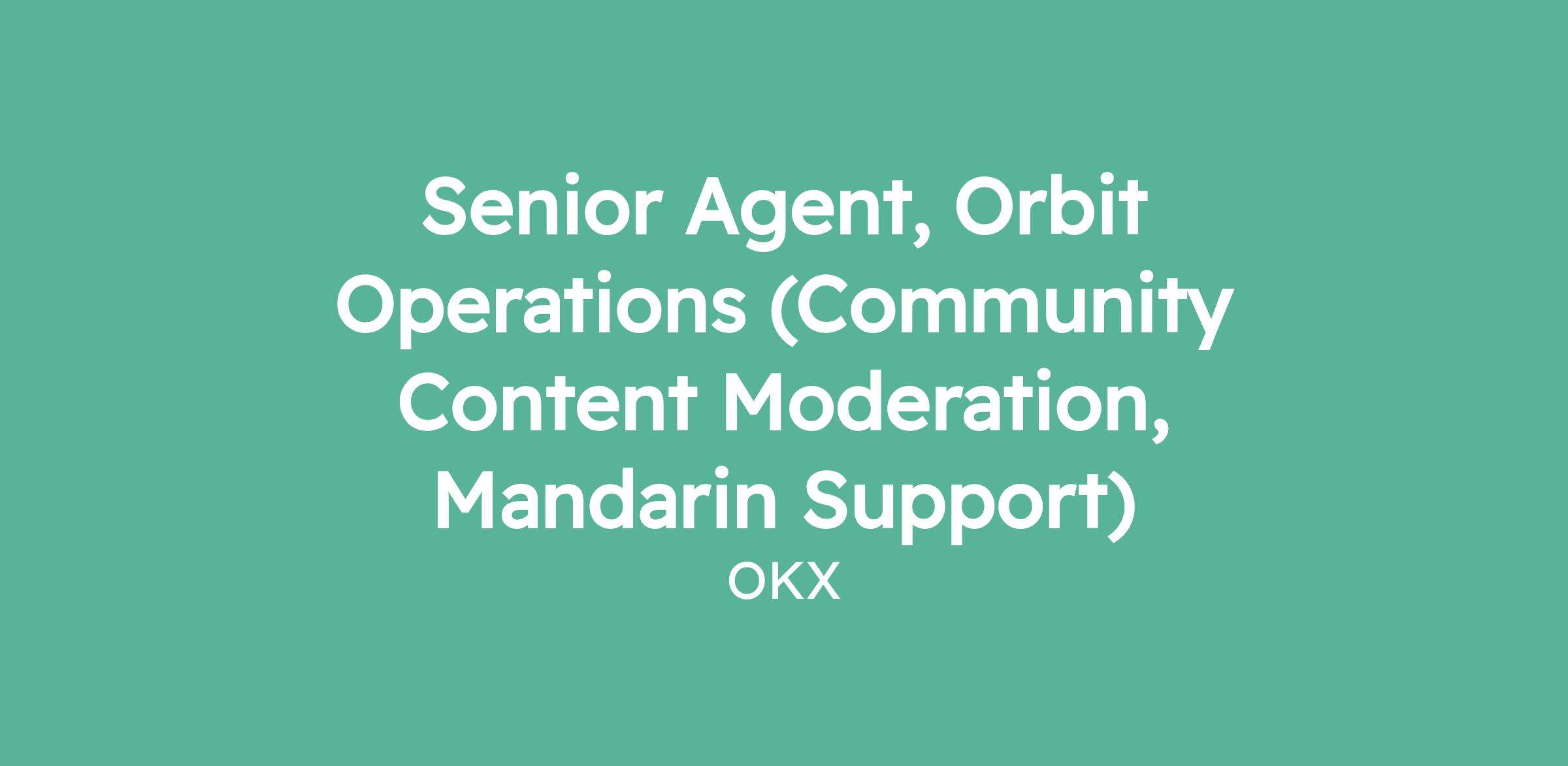 Senior Agent, Orbit Operations (Community Content Moderation, Mandarin Support)