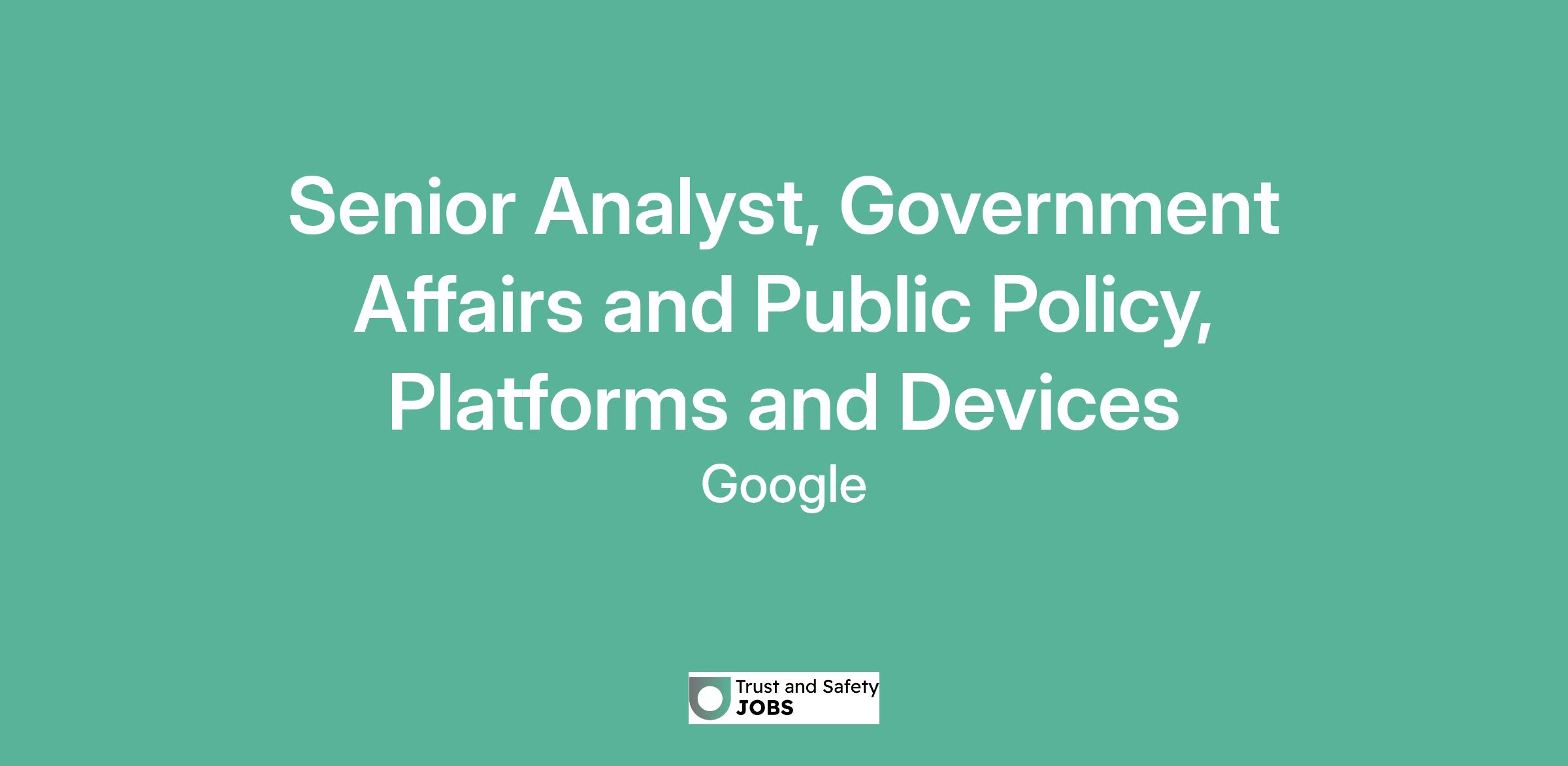 Senior Analyst, Government Affairs and Public Policy, Platforms and Devices
