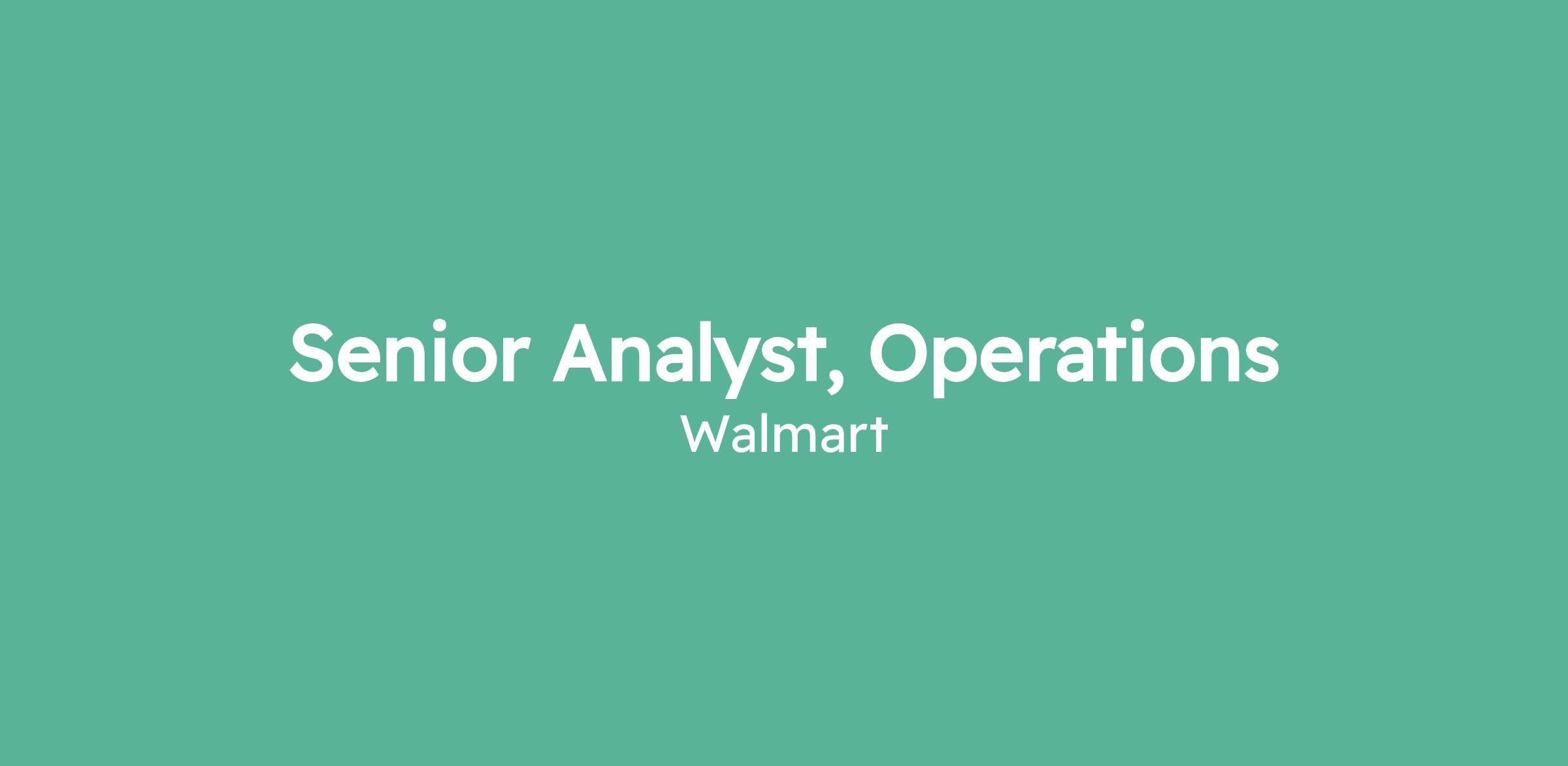 Senior Analyst, Operations