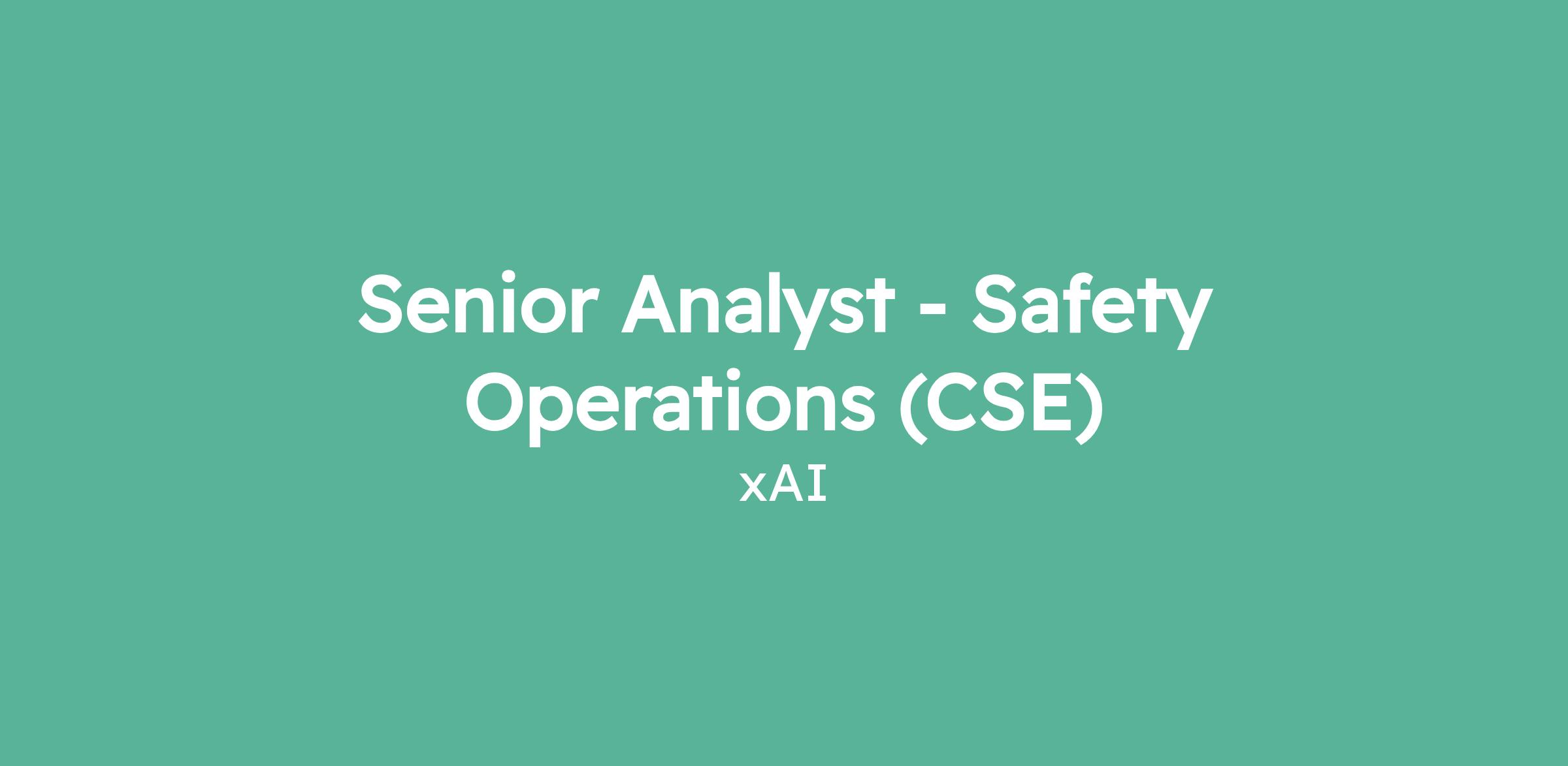 Senior Analyst - Safety Operations (CSE)