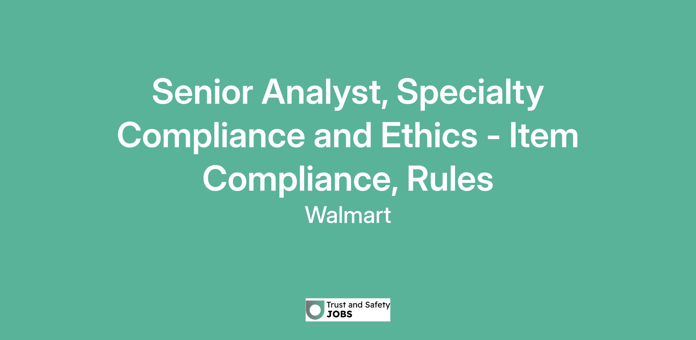 Senior Analyst, Specialty Compliance and Ethics - Item Compliance, Rules