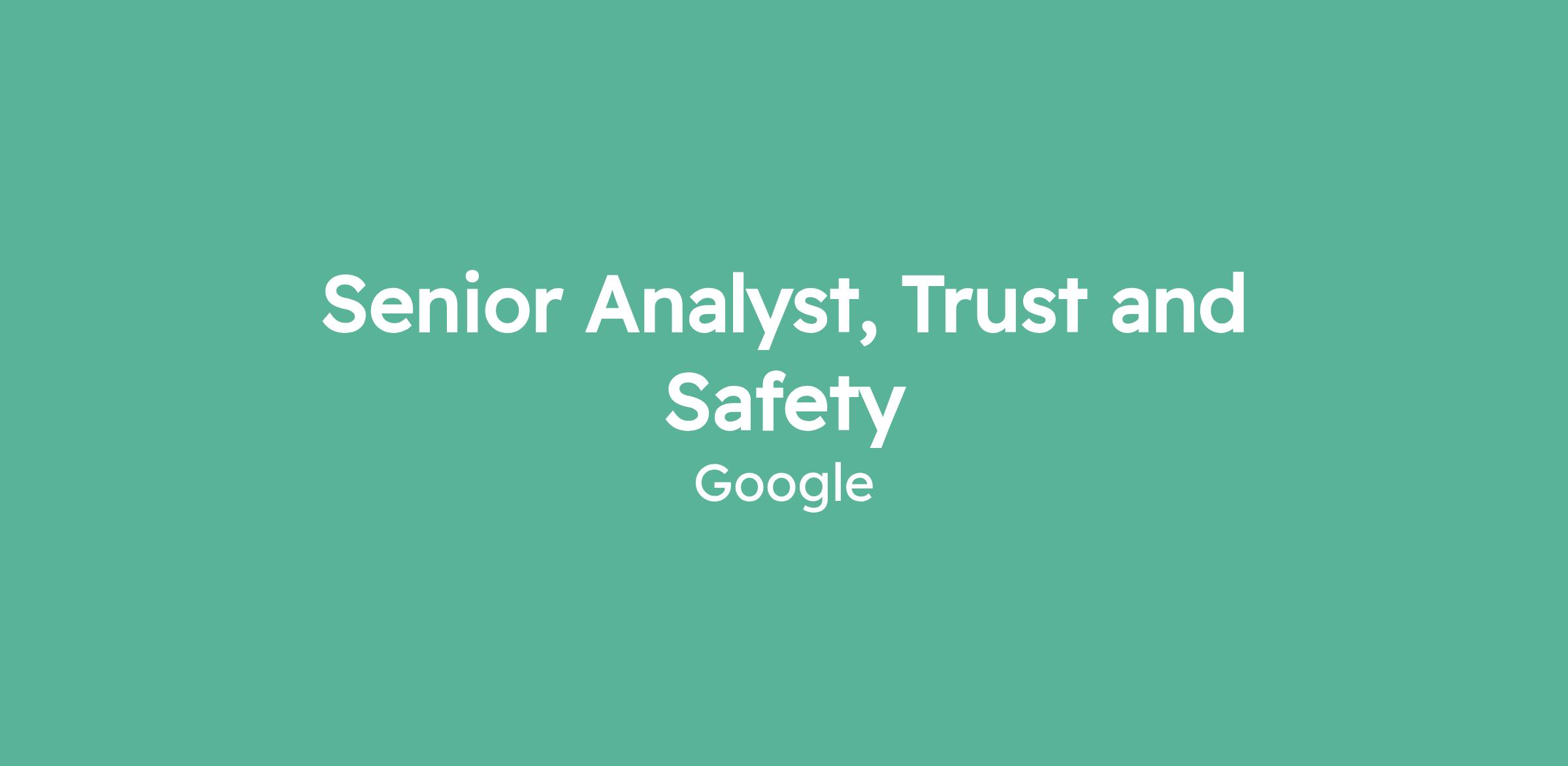 Senior Analyst, Trust and Safety