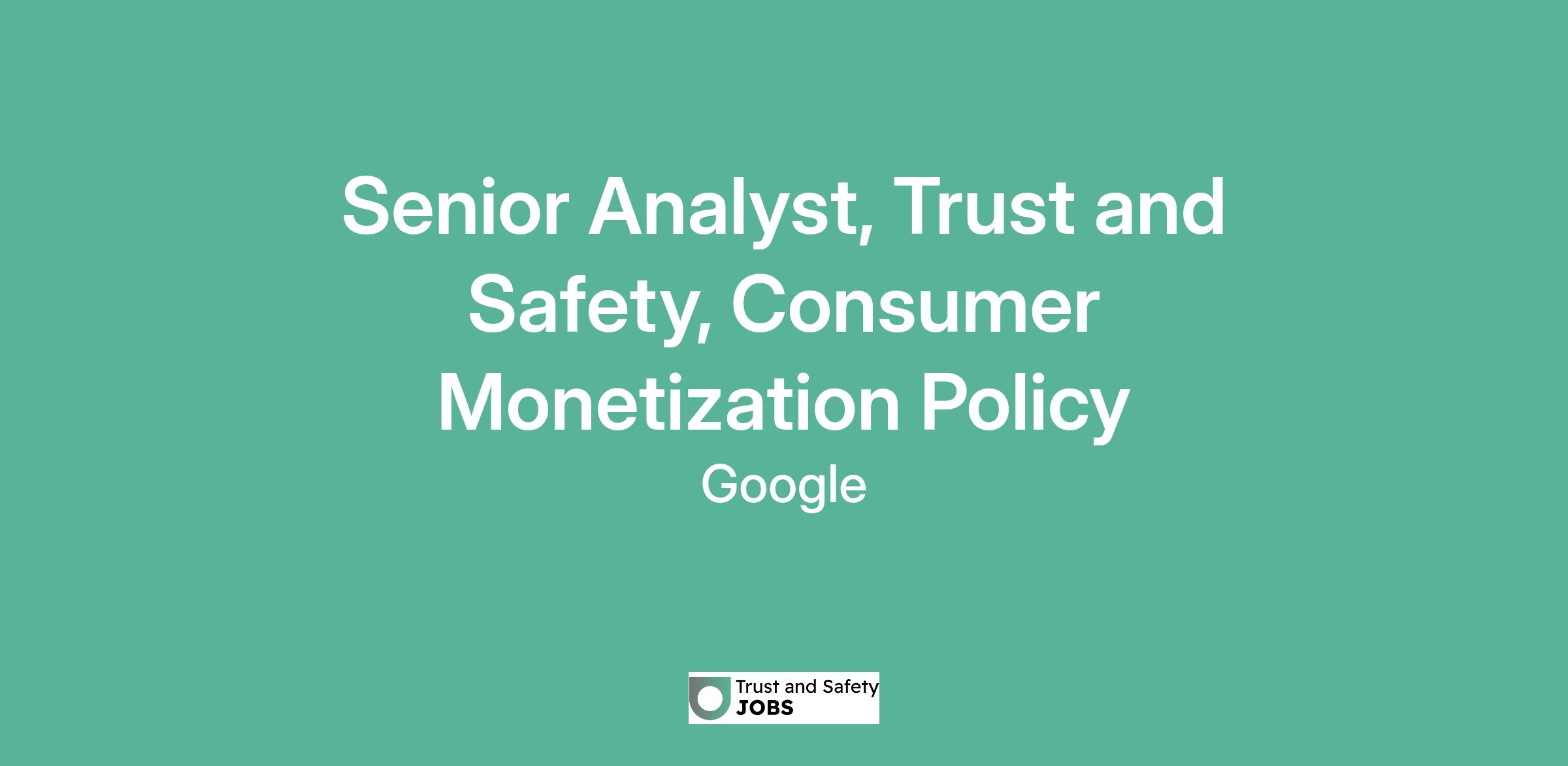 Senior Analyst, Trust and Safety, Consumer Monetization Policy
