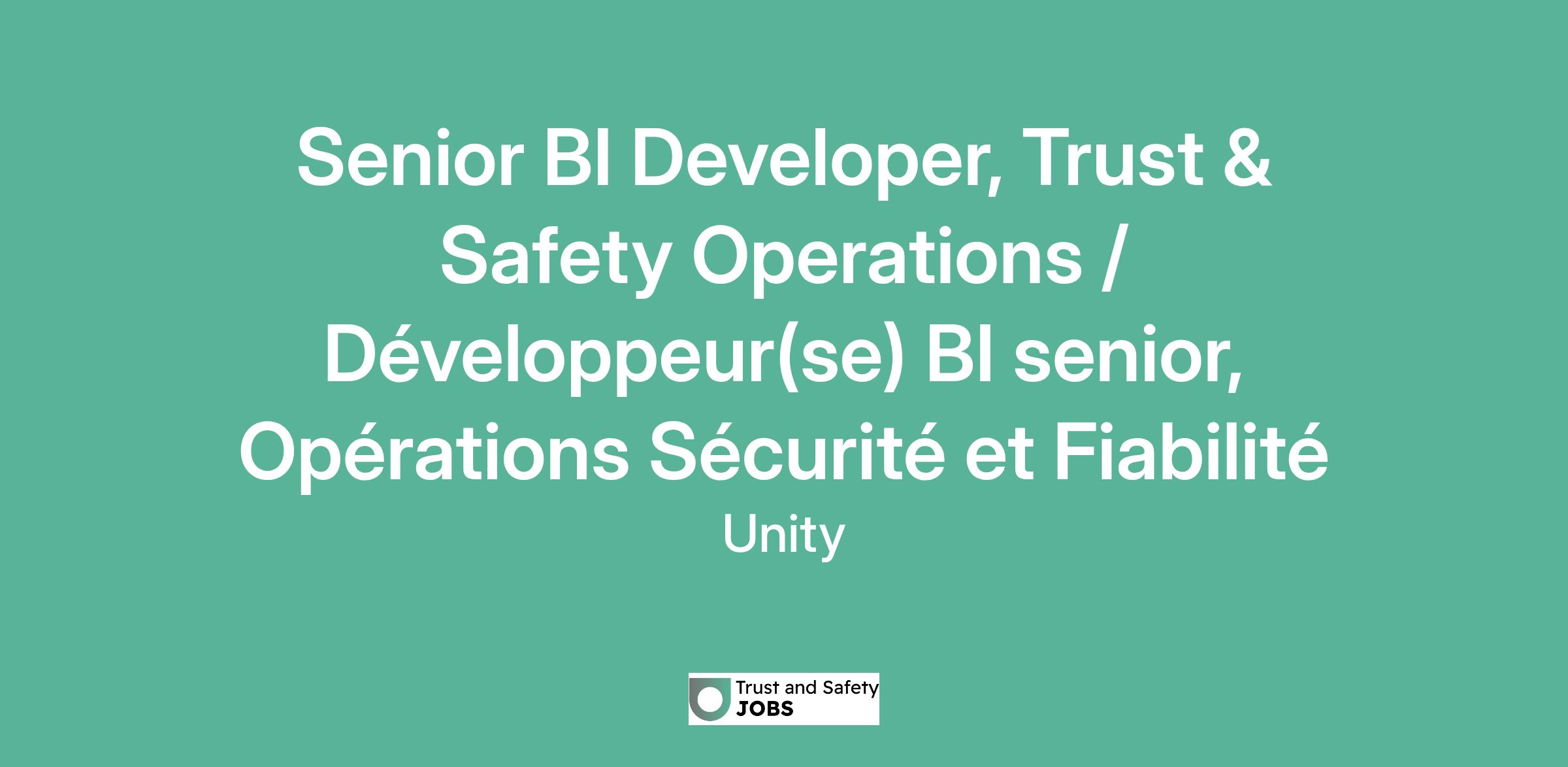 Senior BI Developer, Trust & Safety Operations / Développeur(se) BI senior, Opérations Sécurité et Fiabilité
