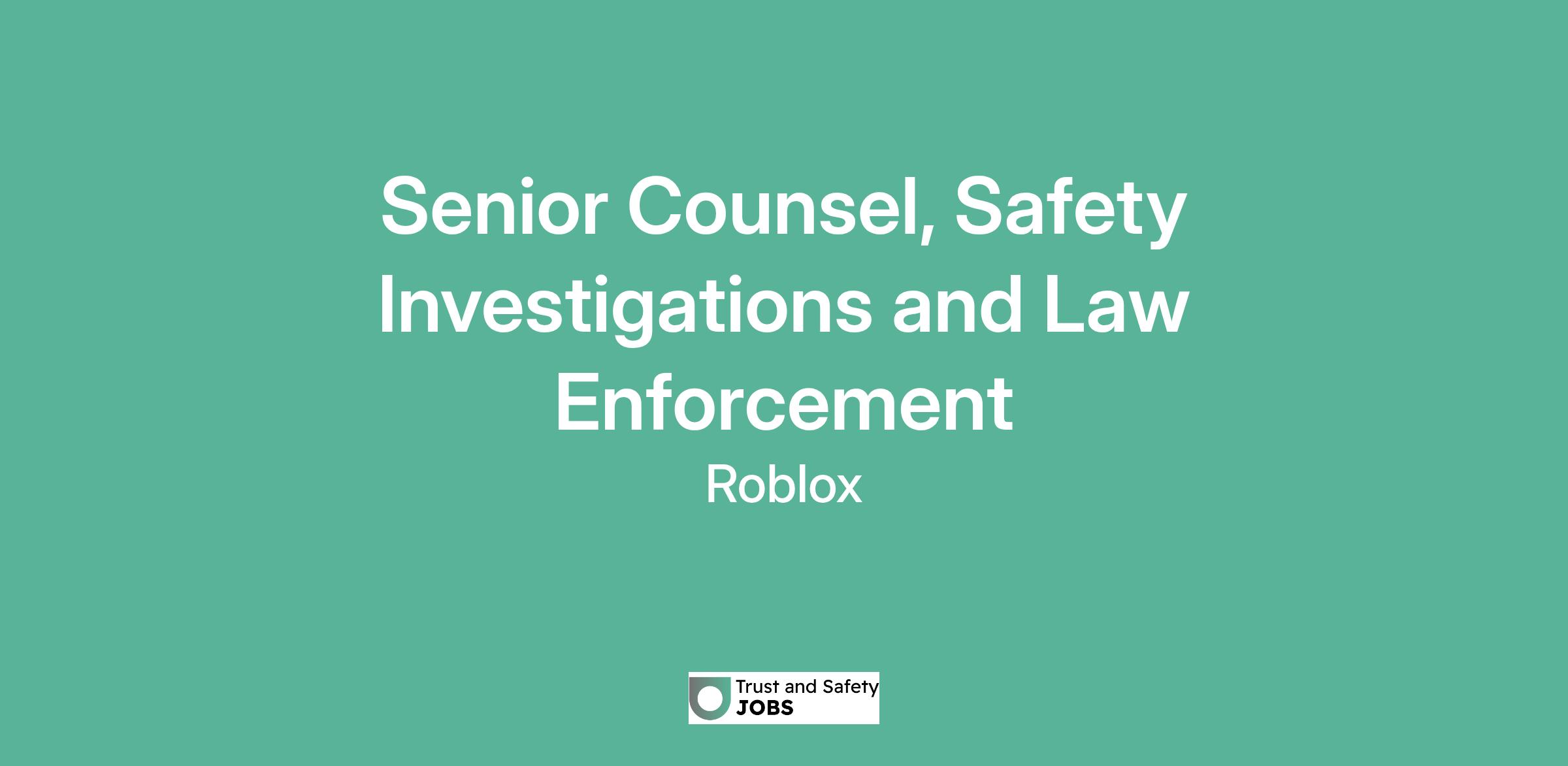 Roblox is looking for an experienced Senior Counsel, Safety Investigations and Law Enforcement to join our Legal team. In this role, you will provide legal advice and guidance to our Law Enforcement Engagement and Safety Investigations teams, including Critical Harms and Special Investigations. You will report to our Director, Litigation.