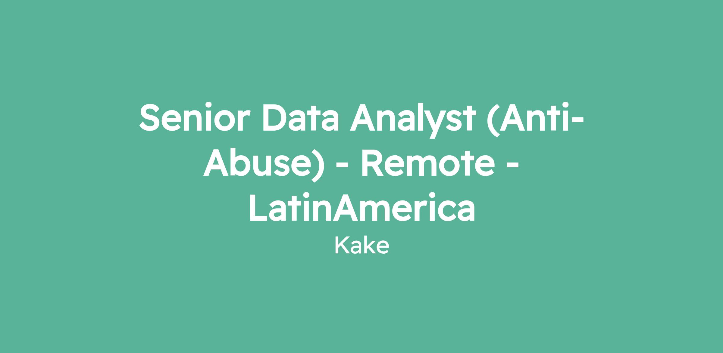 Senior Data Analyst (Anti-Abuse) - Remote - LatinAmerica