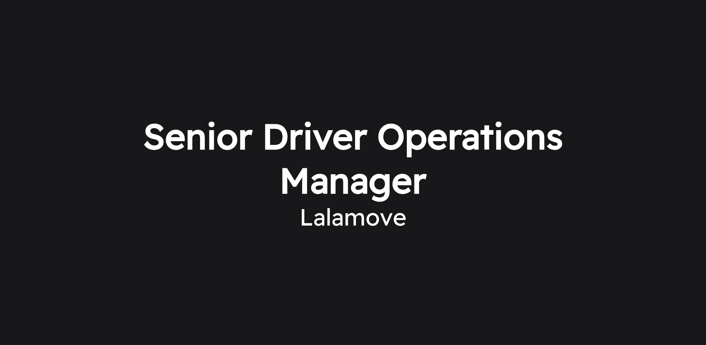 We are seeking a Senior Driver Operations Manager who will not back down in the face of challenge, who is ready to try new things and is ready to make history together with the rest of the team at Lalamove. Life at Lalamove is fast-paced, thrilling, and we are constantly doing things no one has ever done before. Reporting to the Director, Driver Operations, this person will drive cross-departmental projects that strengthen Lalamove’s supply ecosystem and protect the integrity of our marketplace, and scale validated learnings to improve supply quantity and quality across assigned marketsĀ