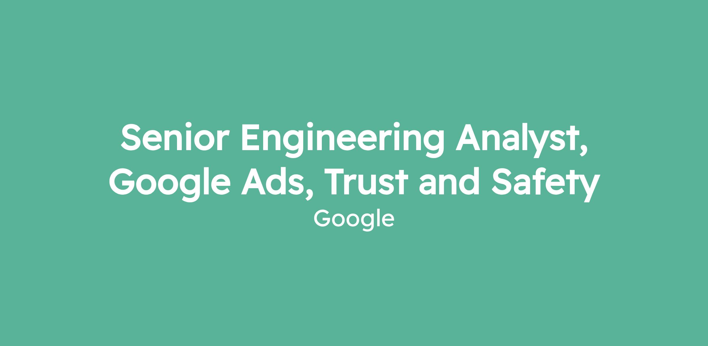 Senior Engineering Analyst, Google Ads, Trust and Safety