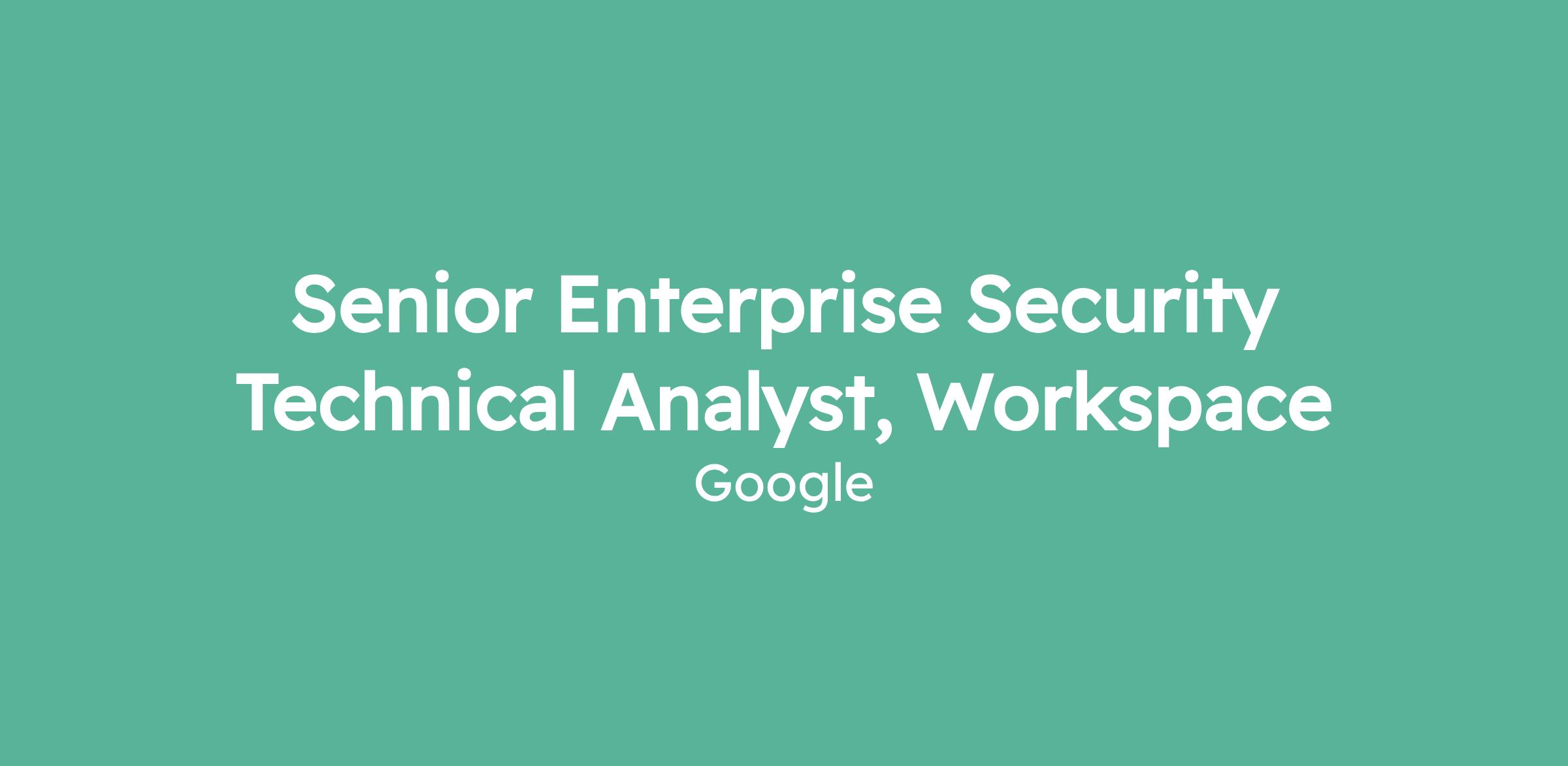 Senior Enterprise Security Technical Analyst, Workspace