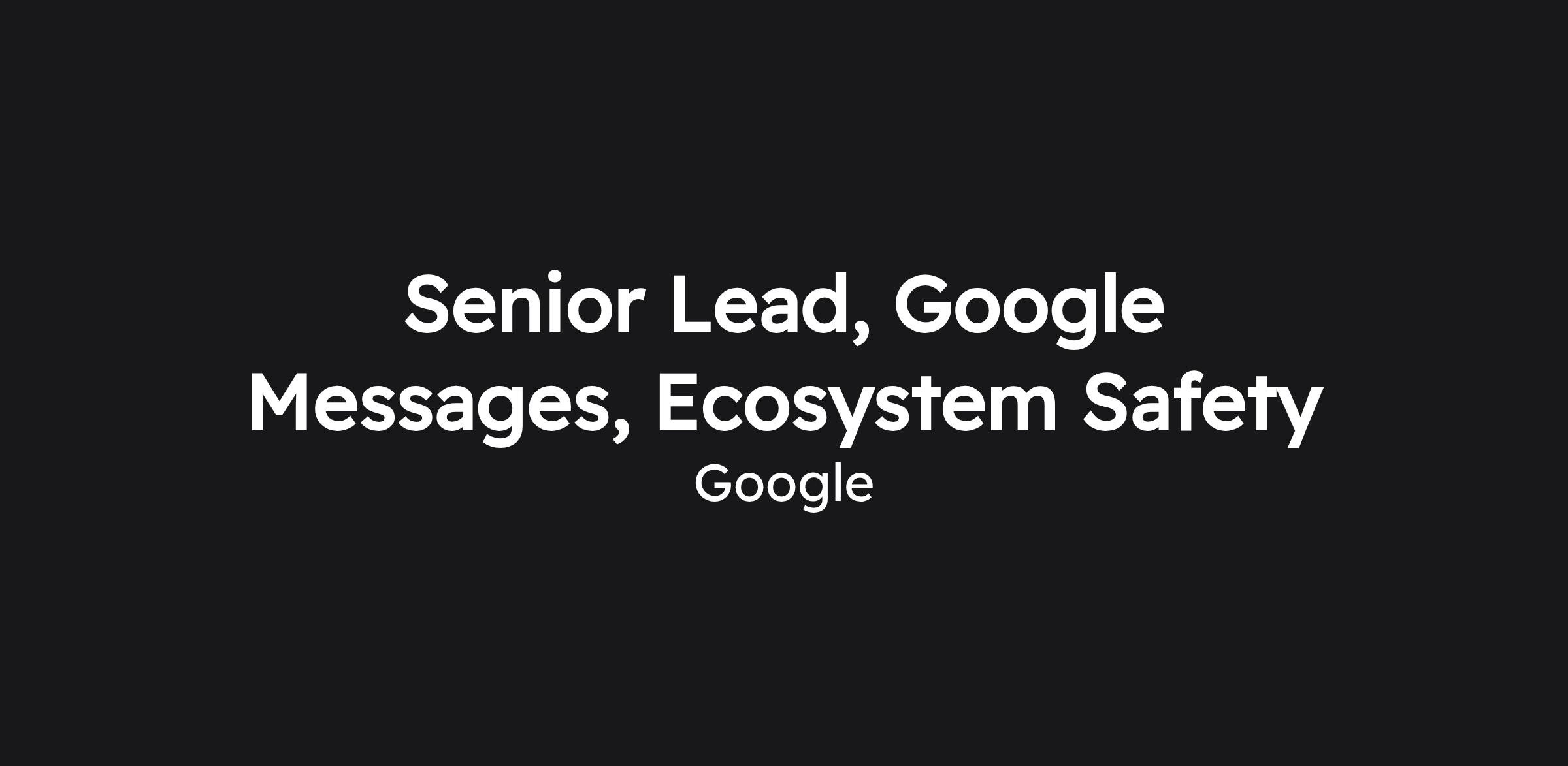 Senior Lead, Google Messages, Ecosystem Safety