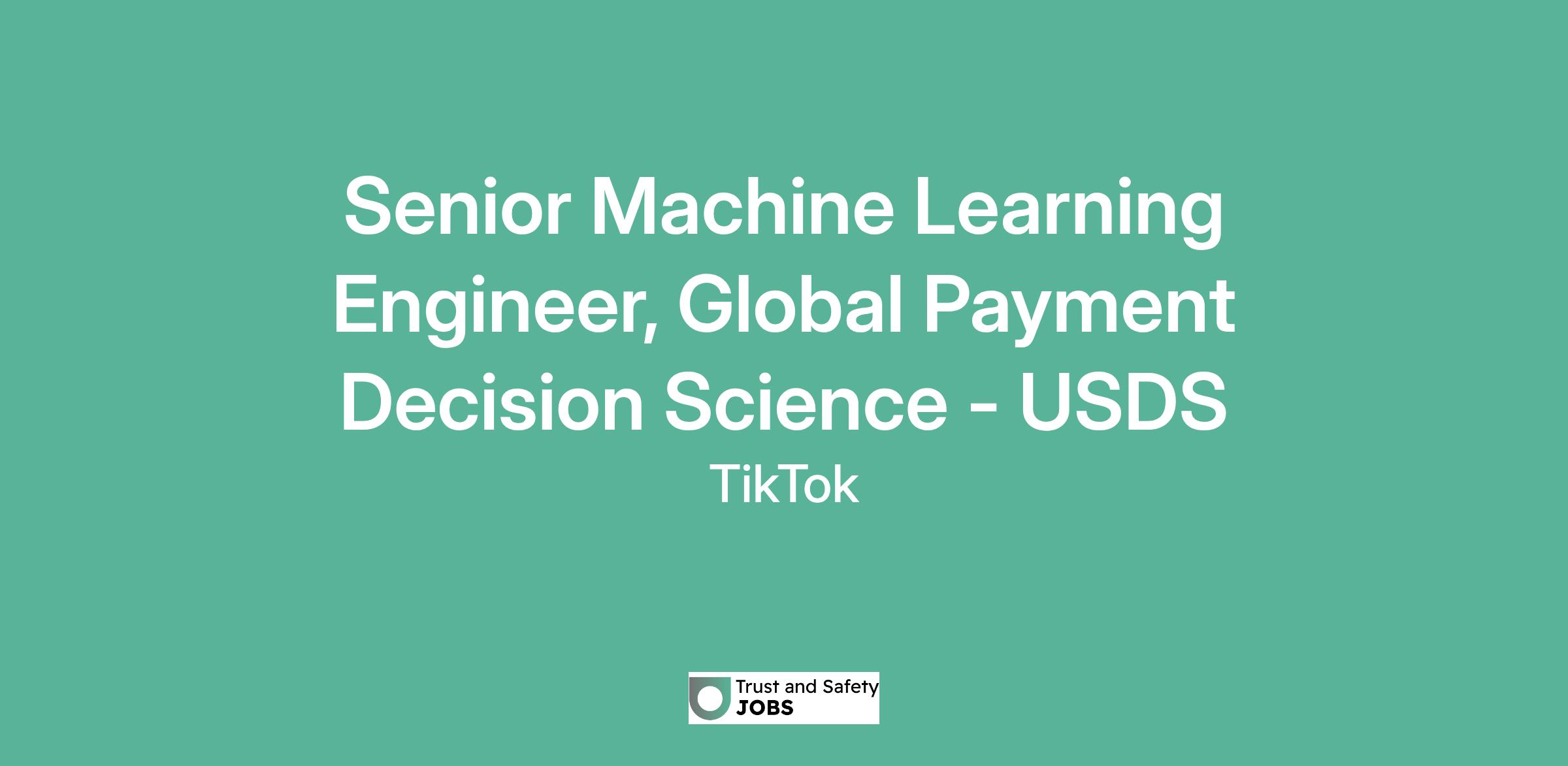 Senior Machine Learning Engineer, Global Payment Decision Science - USDS