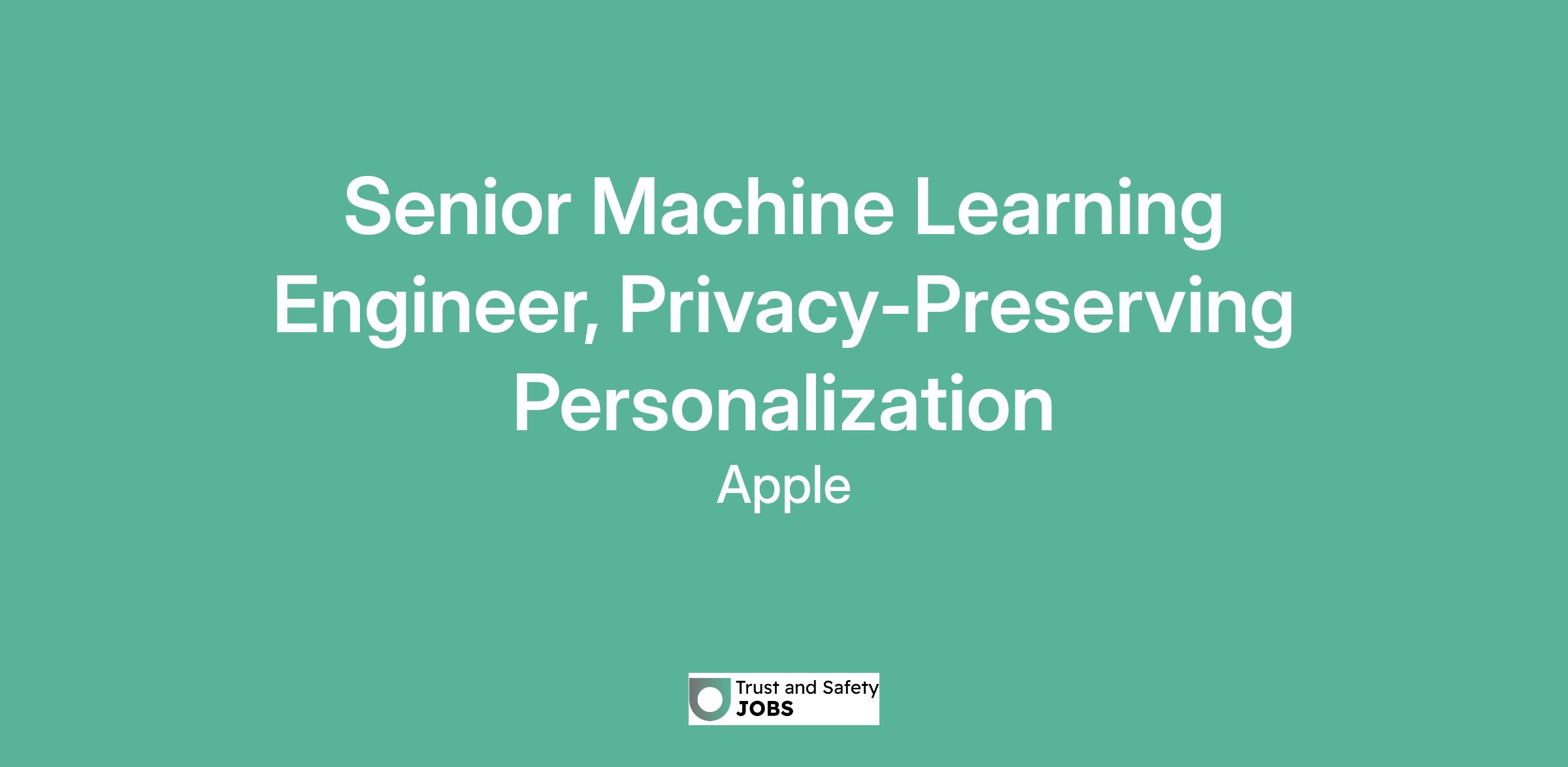 Senior Machine Learning Engineer, Privacy-Preserving Personalization