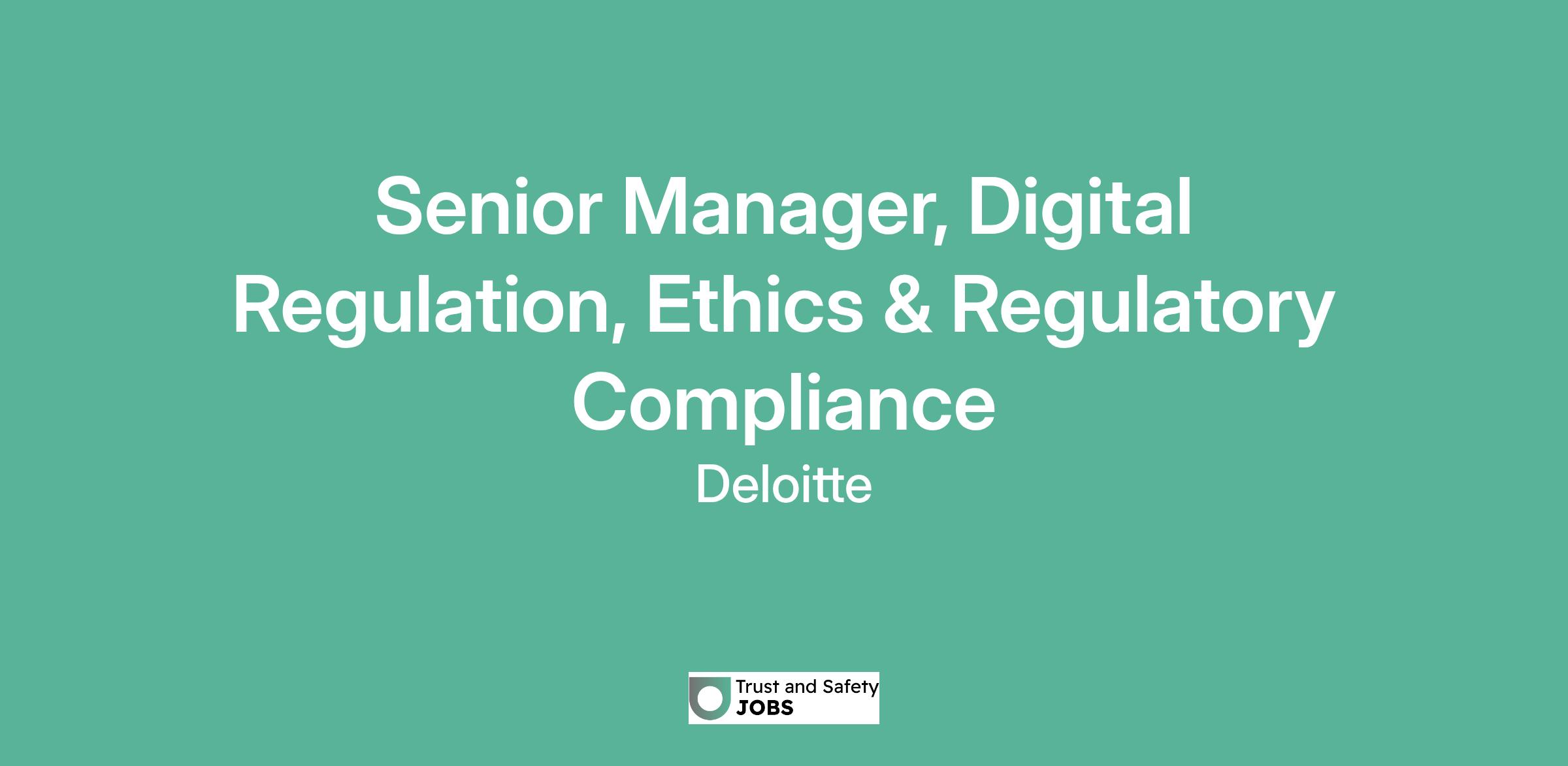 Senior Manager, Digital Regulation, Ethics & Regulatory Compliance