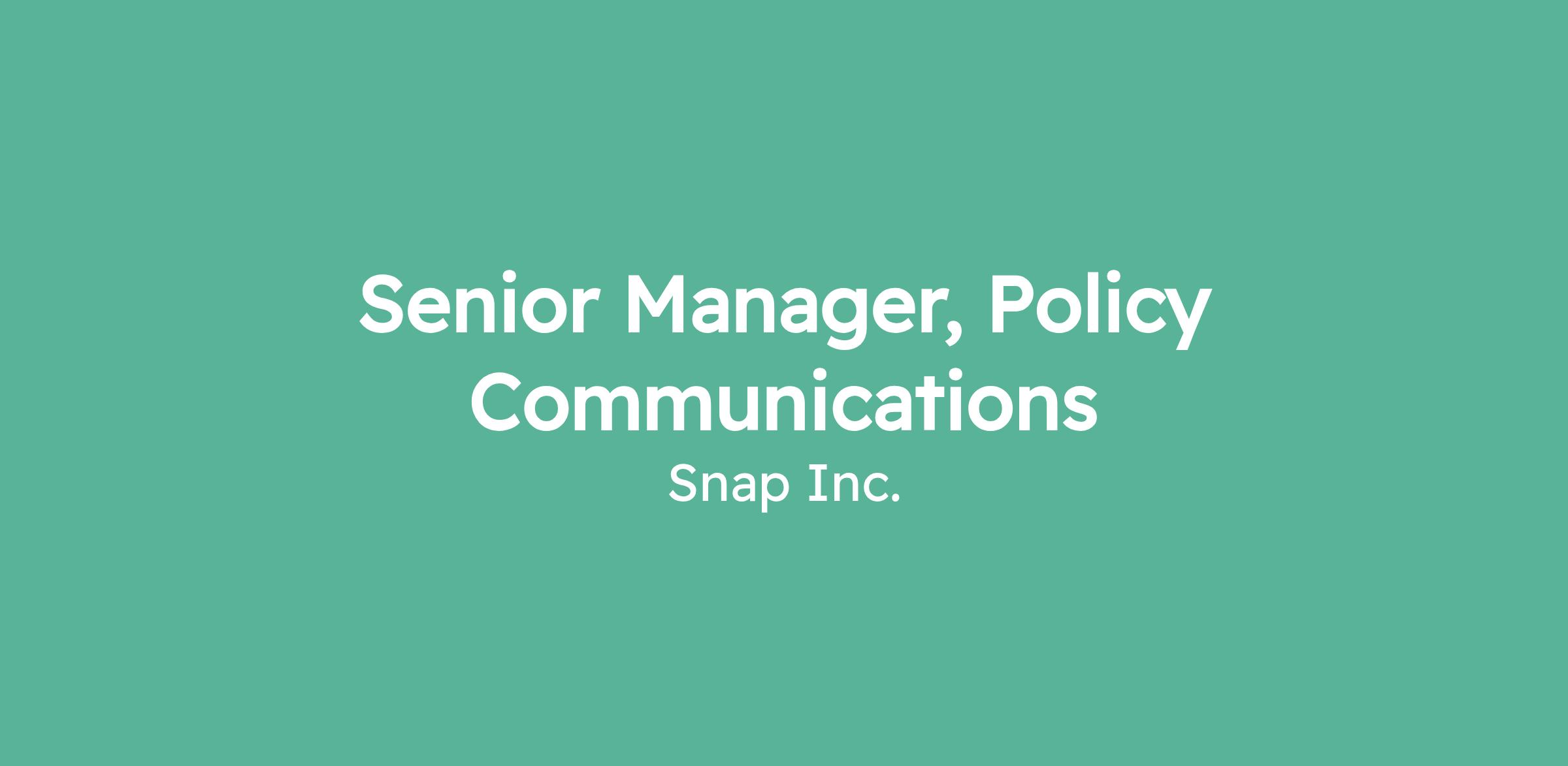 Senior Manager, Policy Communications