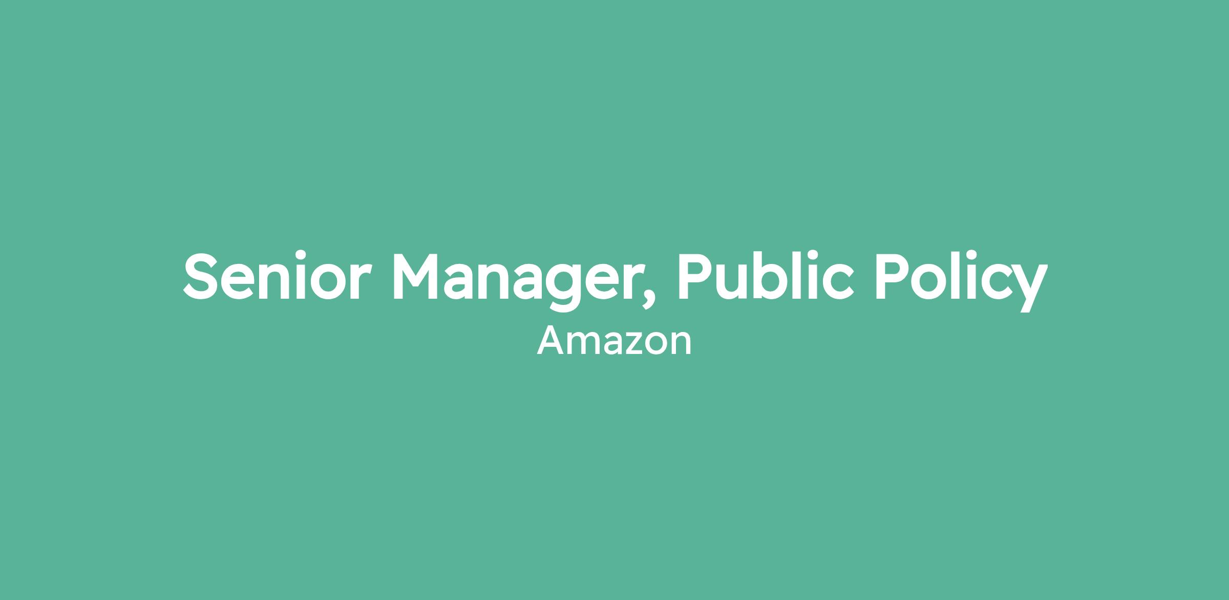 Come build a future with Amazon Public Policy. The Senior Manager, Public Policy will join a growing, dynamic team and will immediately make an impact with an expanding portfolio of projects.